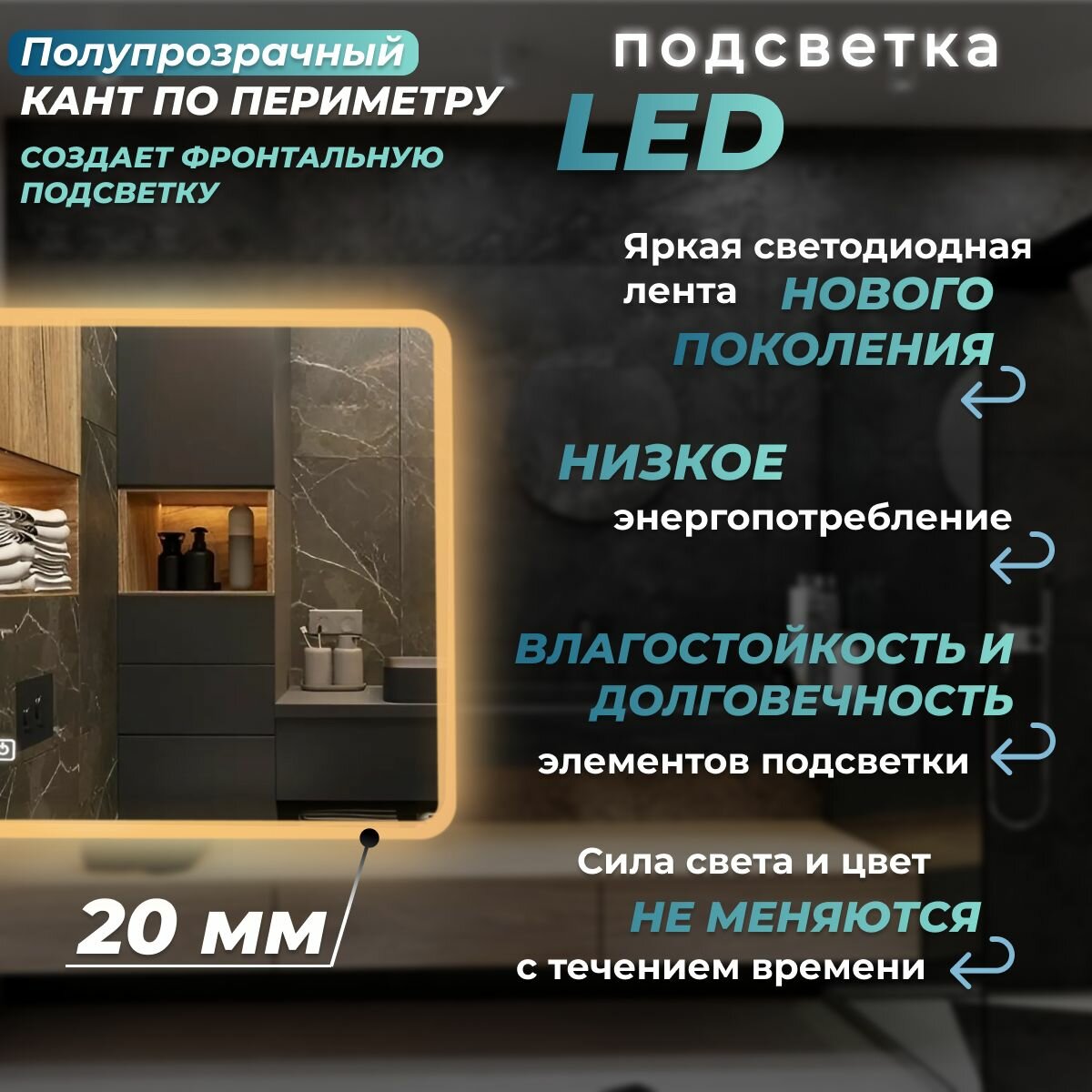 Зеркало настенное Иллюзия лайт, теплая подсветка, сенсорный выключатель, для ванной, 100х80