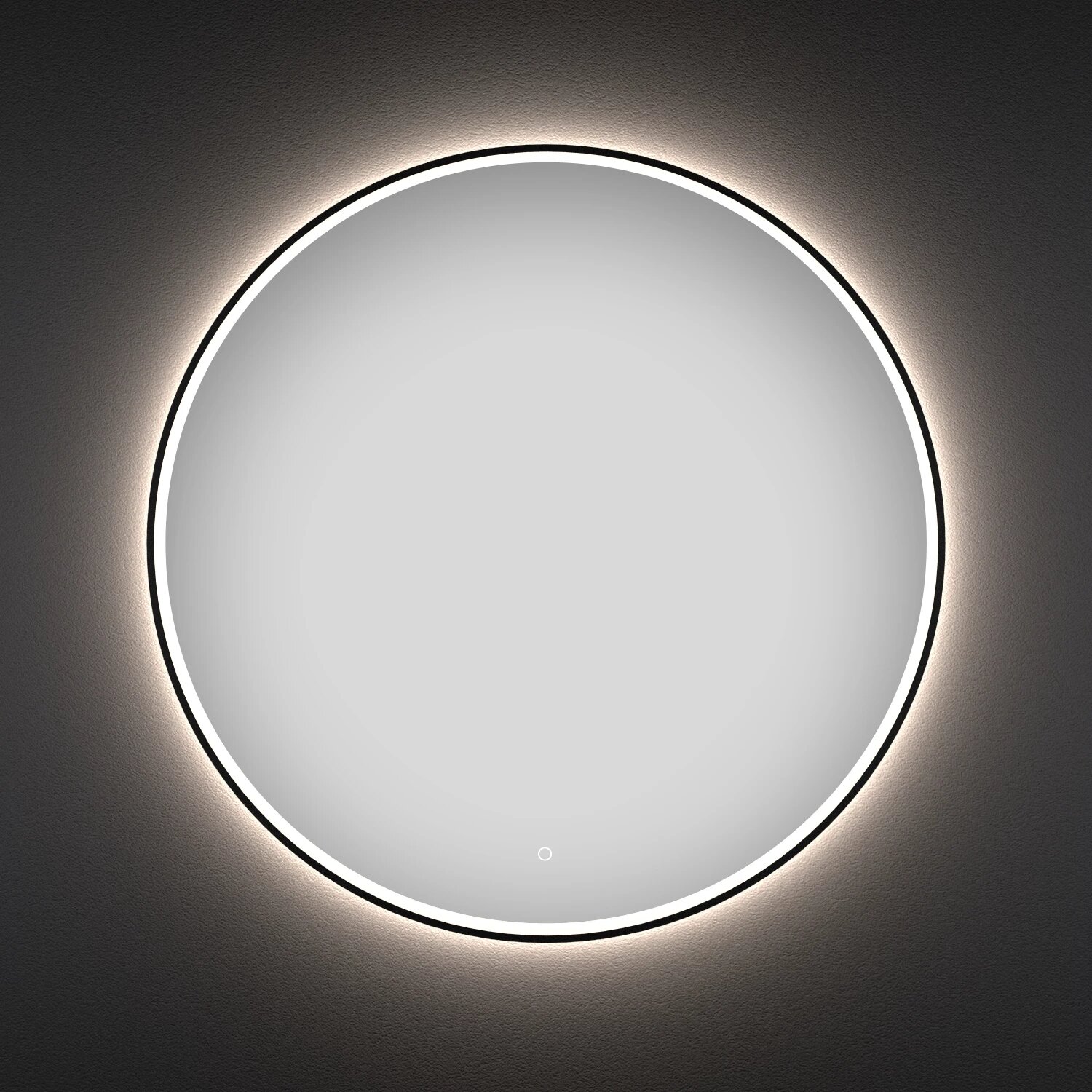 Настенное зеркало в ванную с подсветкой Wellsee 7 Rays' Spectrum 172200150 : влагостойкое круглое зеркало 80 см с черным матовым контуром