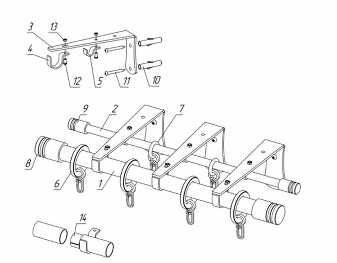 | Комплектация | Штанга d20, штанга d10, кронштейн, кольца с крючками, декоративный наконечник. Всё для монтажа, инструкция. |