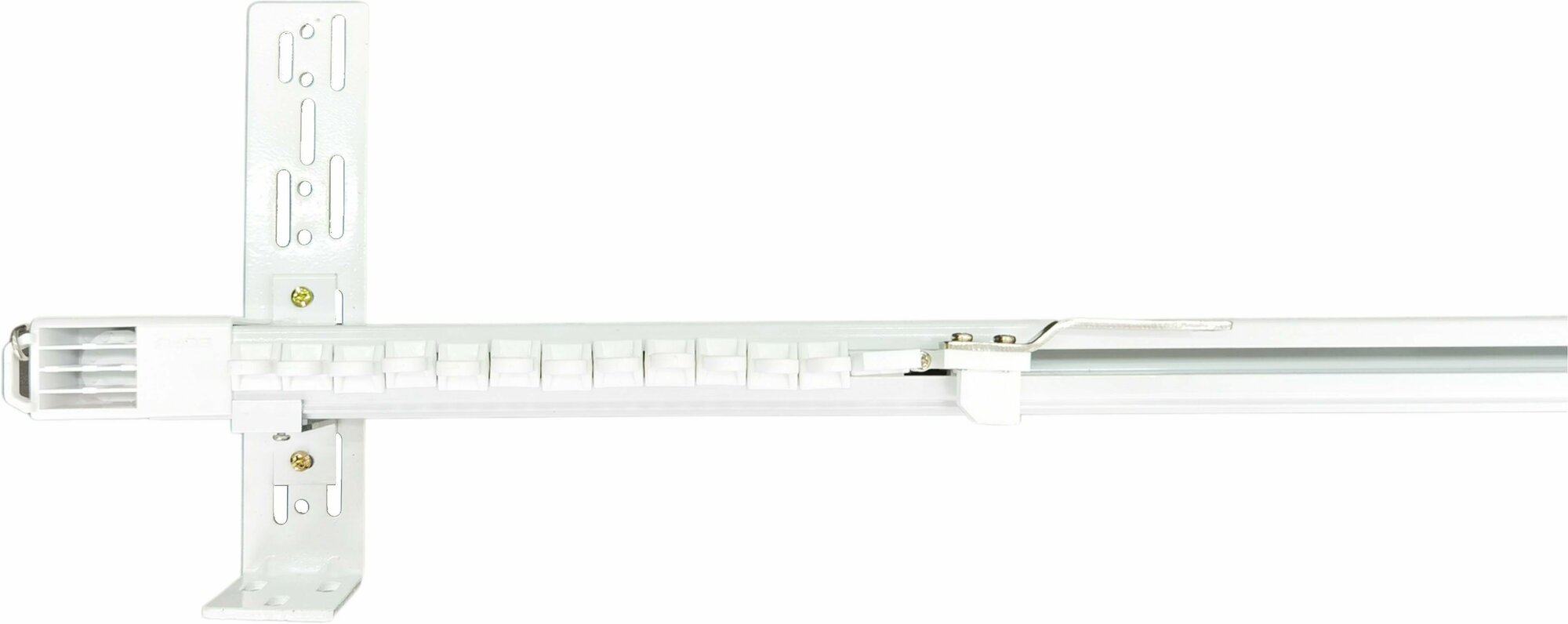 | Комплектация | 1. Концевой блок для мотора, 2. Концевой блок - 3 шт, 3. Фиксатор концевого блока, 4. Приводной ремень, 5. Алюминиевый профиль, 6. Кольца для крепления - 24 шт, 7. Приводная каретка - 2 шт, 8. Потолочный кронштейн - 8 шт, 9. Центральный потолочный кронштейн, 10. Наличник для ремня - 3 шт, 11. Настенный кронштейн - 9 шт, 12. Восьмигранный штифт, 13. Крючок для подвески шторы - 24 шт. |