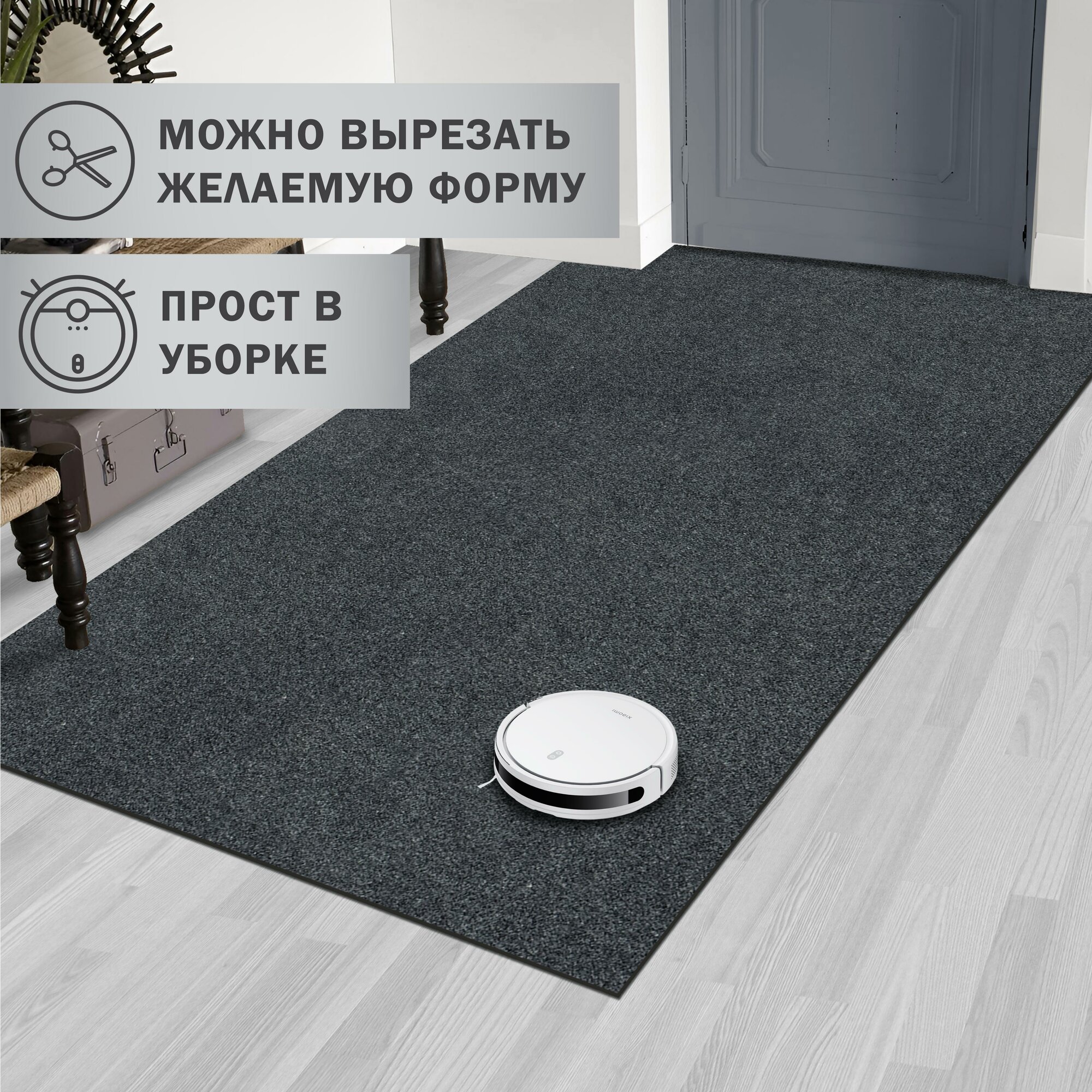 Коврик вырезной придверный icarpet практик антискользящий влаговпитывающий 120х200 серый