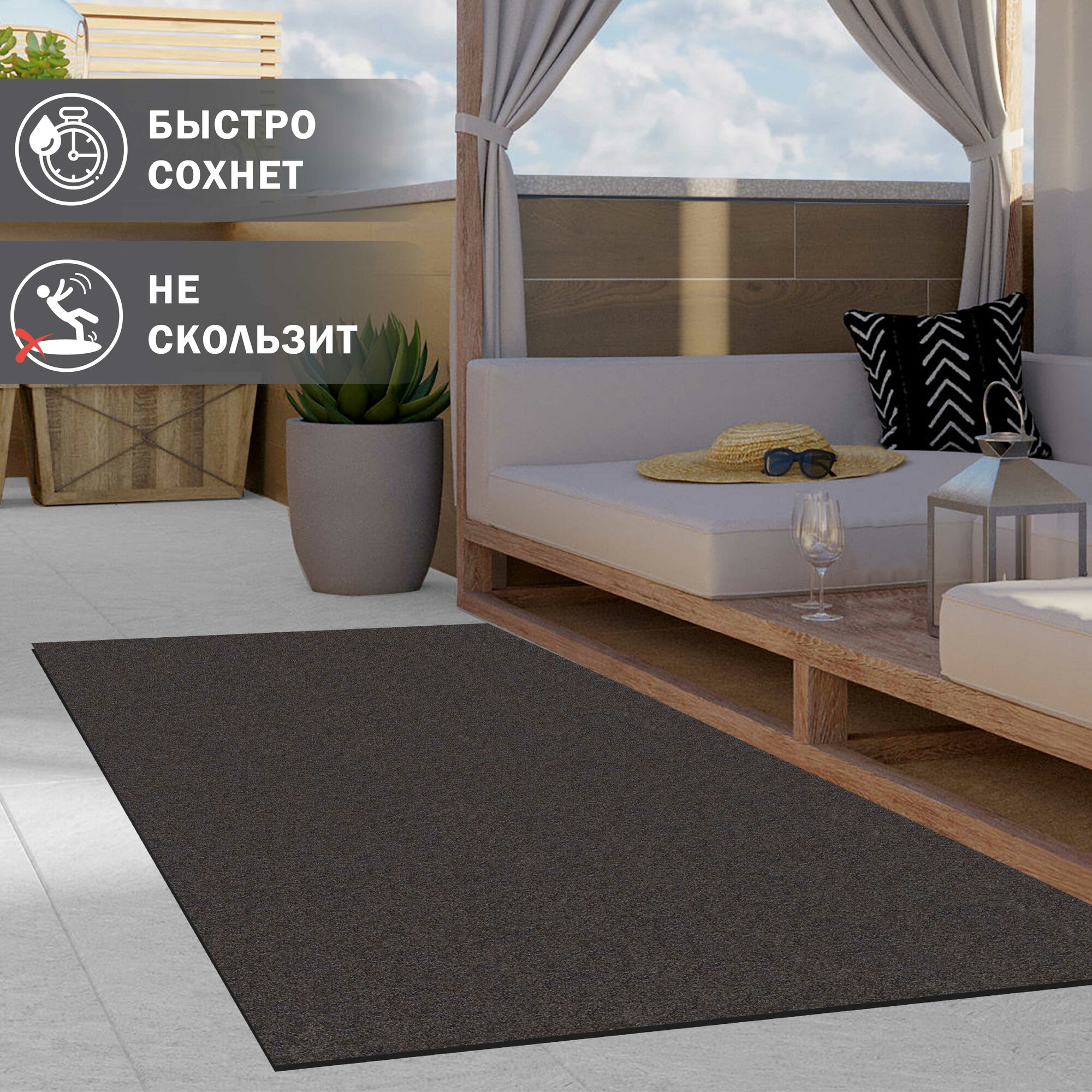 Коврик вырезной придверный icarpet практик антискользящий влаговпитывающий 120х200 мокко