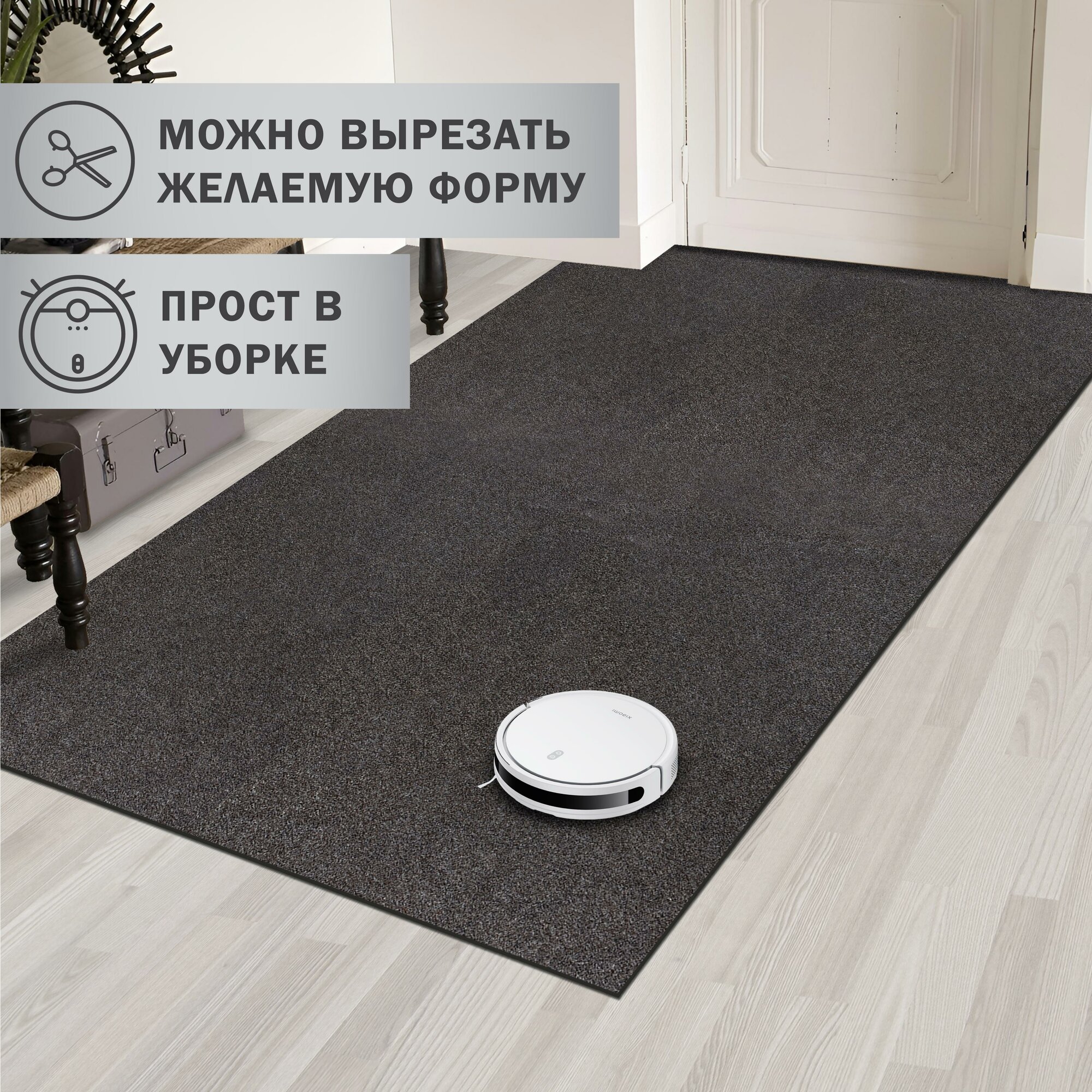 Коврик вырезной придверный icarpet ПРАКТИК антискользящий влаговпитывающий 60х120 см, серый коврик для прихожей