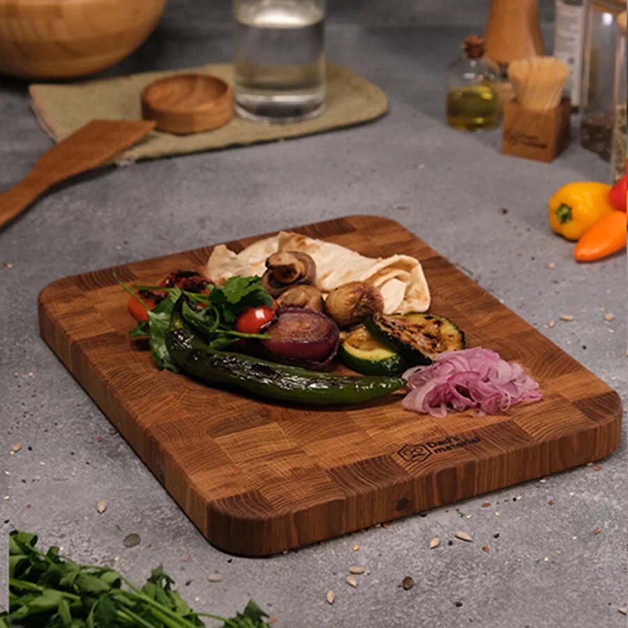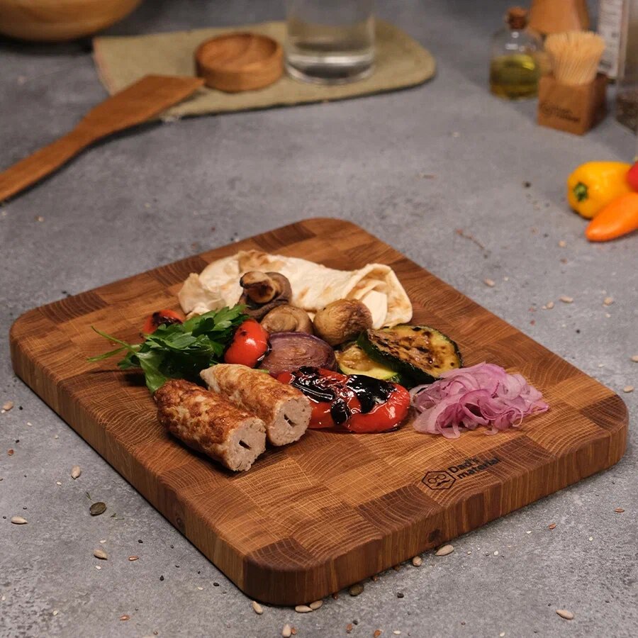 Разделочная доска Dad's material, деревянная, торцевая, нескользящая, натуральное дерево 30x38x8 см
