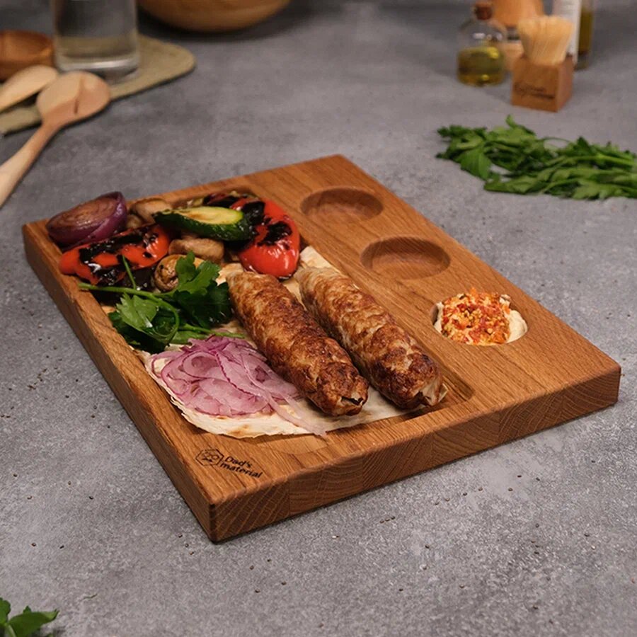 СохранитьСервировочная доска Dad's material, деревянная, с 3 соусниками, 30x22, дуб, нескользящее покрытие интересное:
