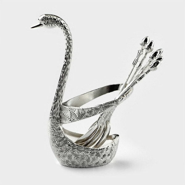 Набор ложек на подставке "Серебряный лебедь", 7.5x5x14 см, 7 предметов, цвет серебряный интересное: