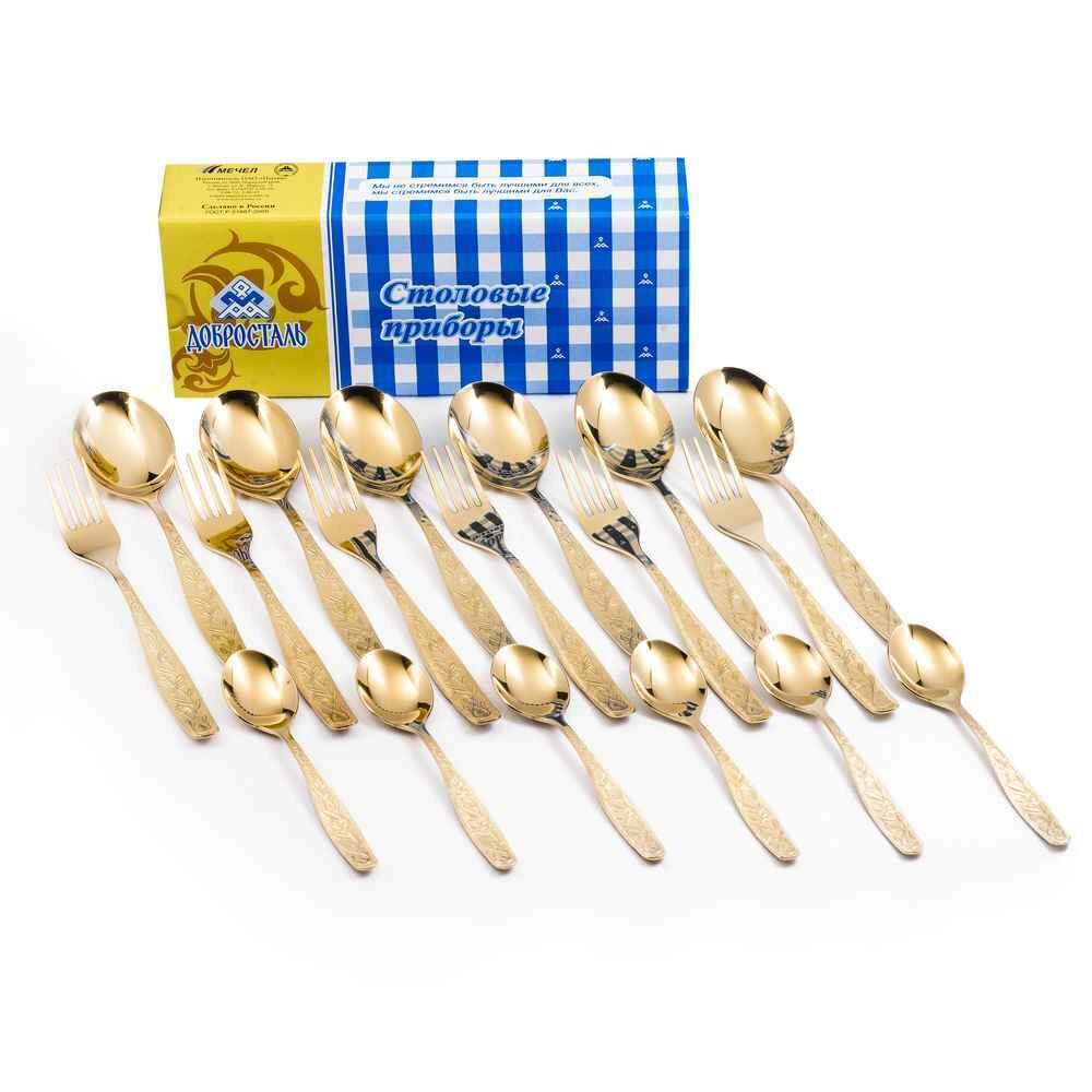 Набор столовых приборов Добросталь (Нытва) Уралочка, 18 предметов, с полным декоративным покрытием .