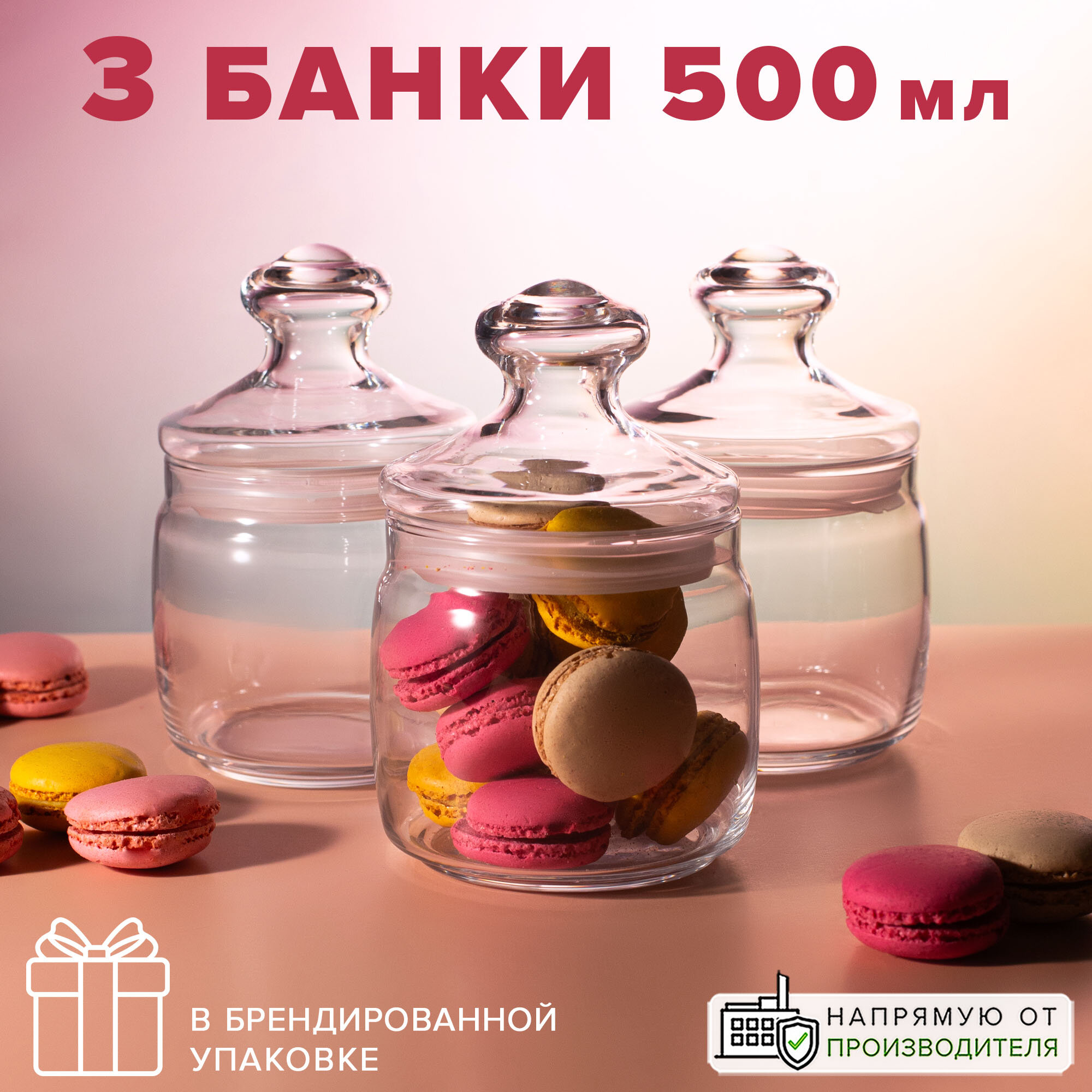 Банка стеклянная с крышкой 500 мл, набор 3 шт, Pasabahce интересное: