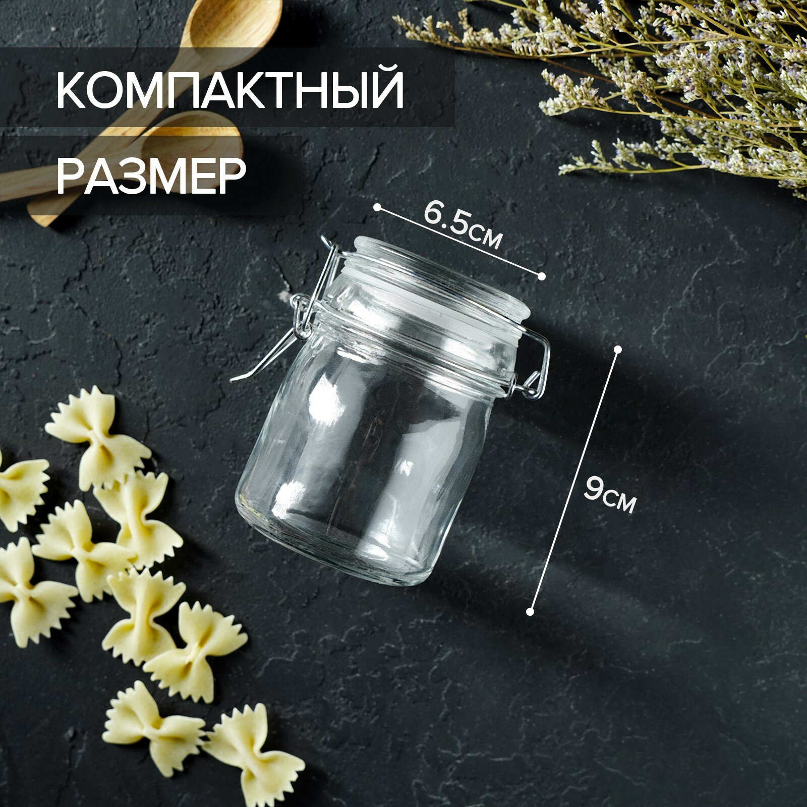 Баночка стеклянная для специй с бугельным замком Доляна «Галерея», 100 мл, 6,5×10,6 см
