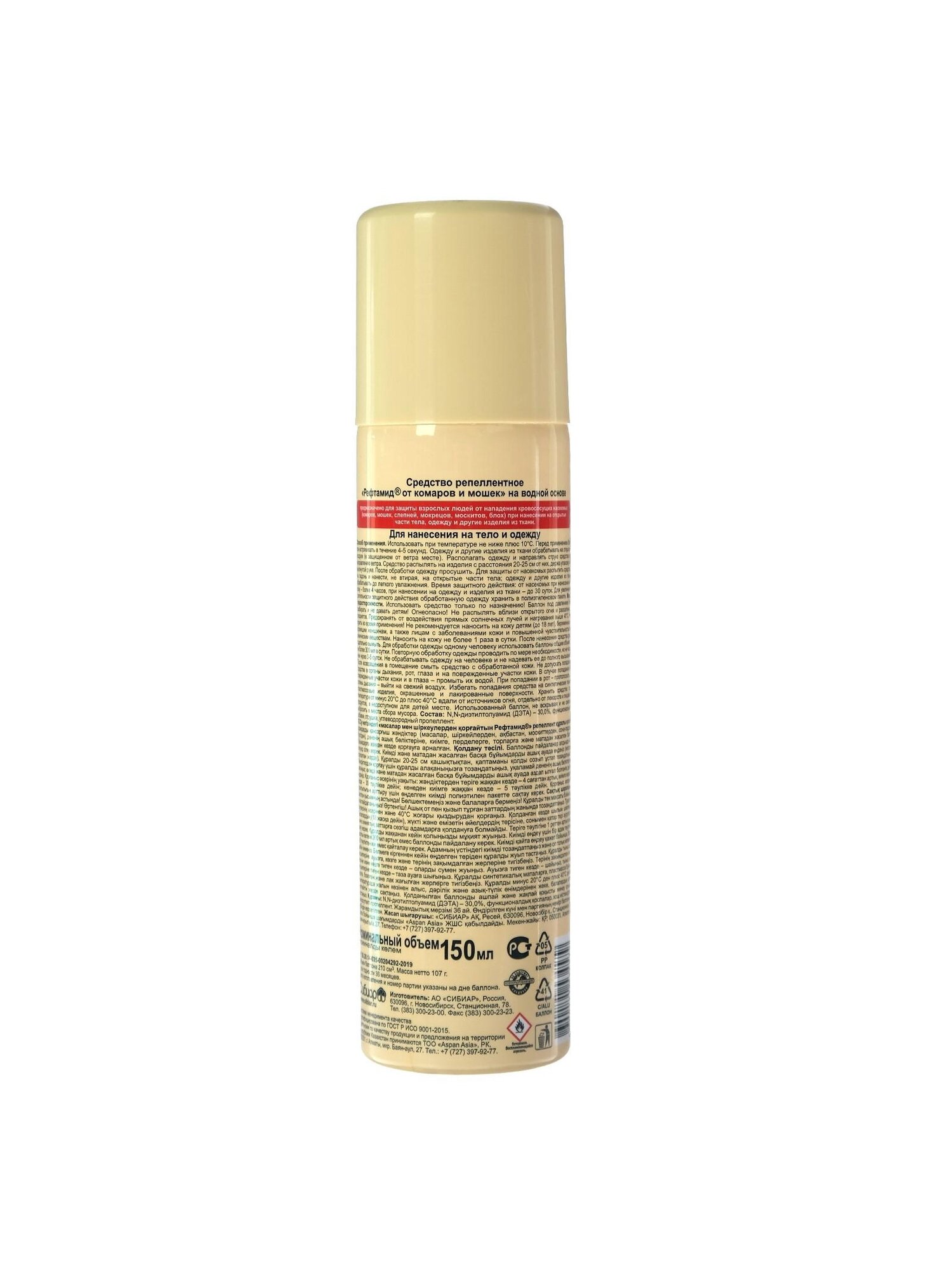 Аэрозоль репеллентный Рефтамид от комаров,мошек и клещей на водной основе, 150 мл
