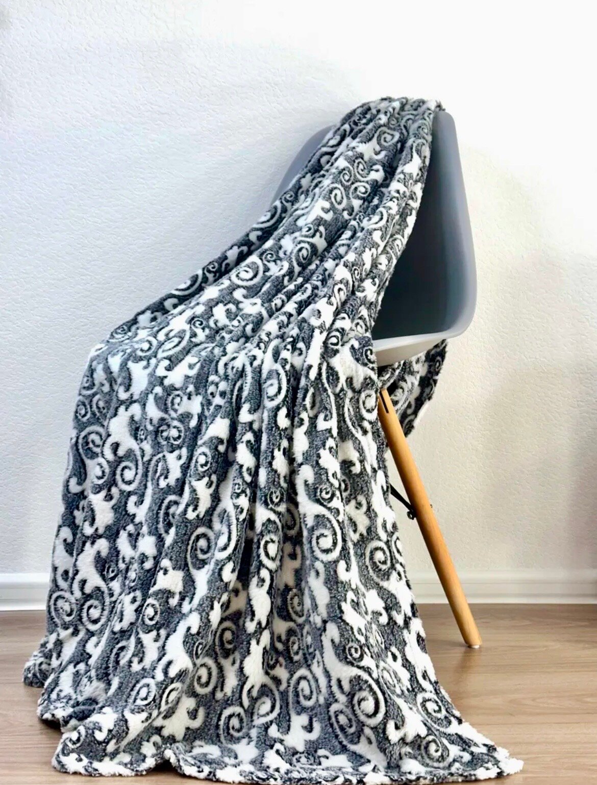 Купить Плед - Вензель, 180х200 см, мягкий, пушистый, тонкий, 2х спальный покрывало