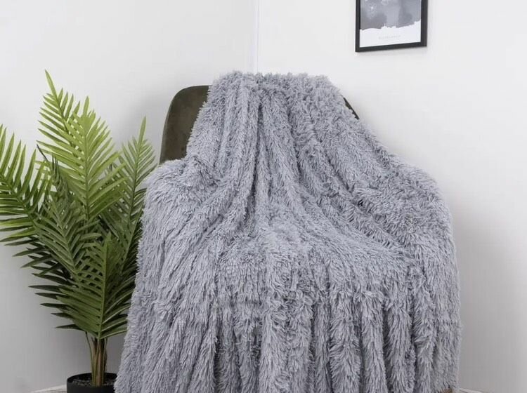 Купить Плед Травка 200 x 220 см, двухсторонний пушистый с длинным ворсом, плед для дивана, плед на кровать, светло-серый