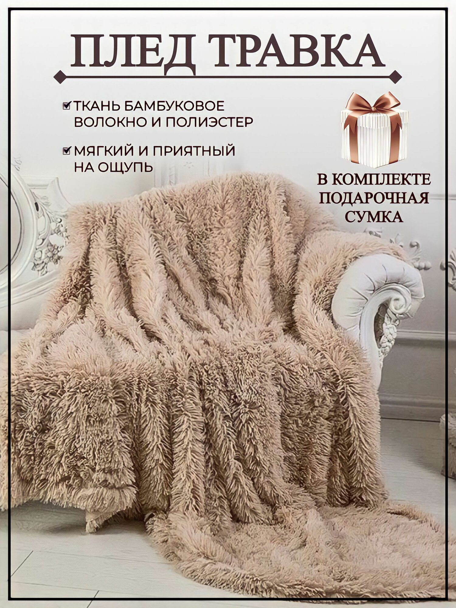 Плед покрывало травка искуственный мех