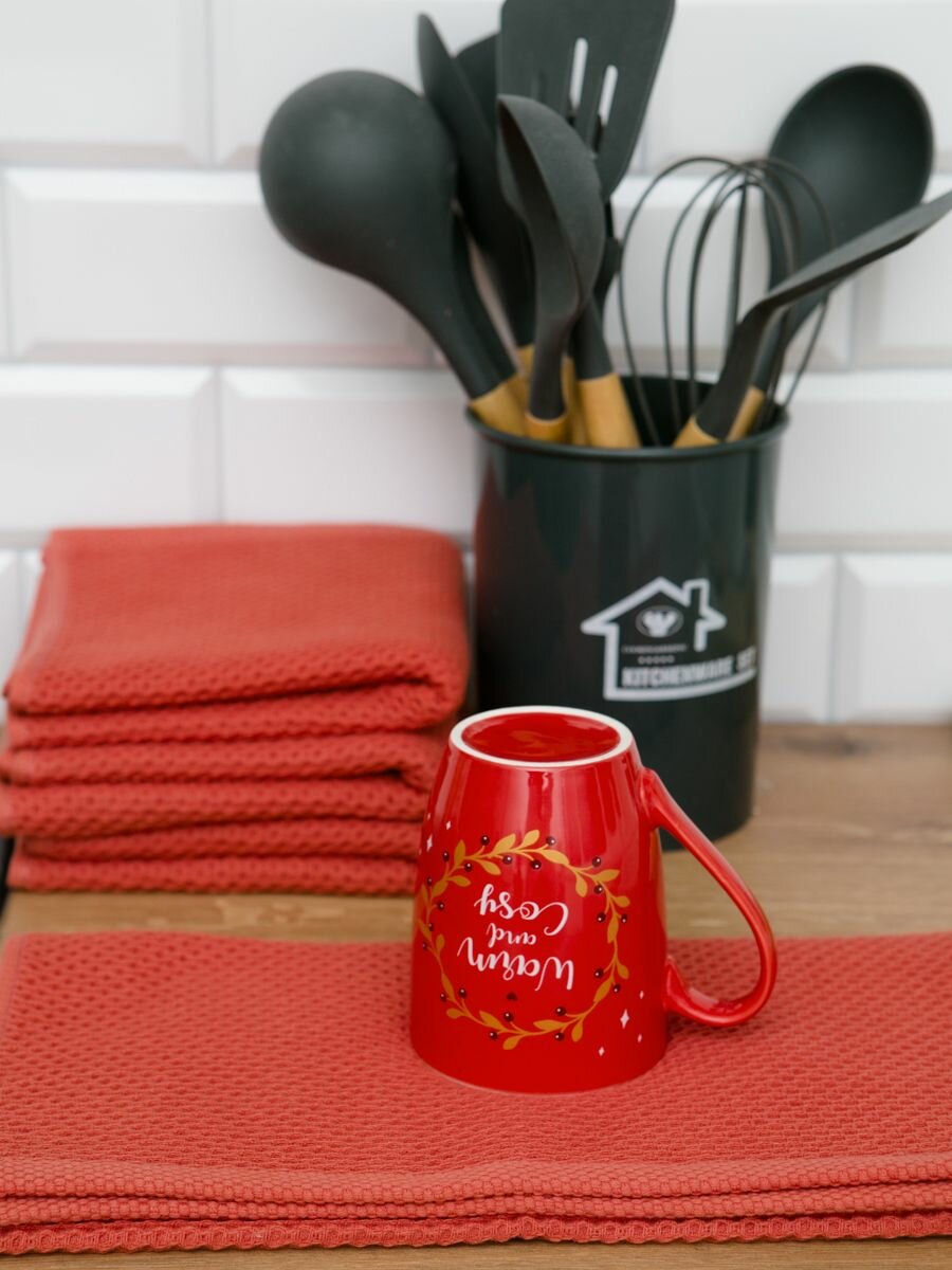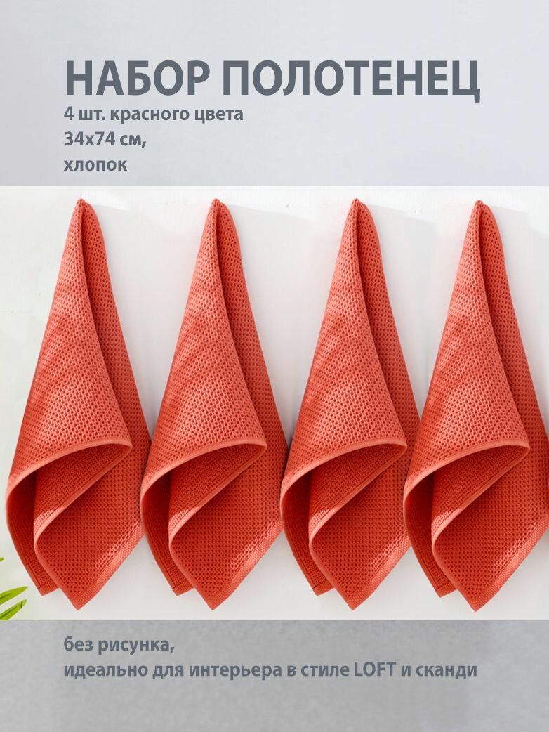 Полотенце кухонное вафельное набор для рук 4 шт хлопок 34x74 см интересное:
