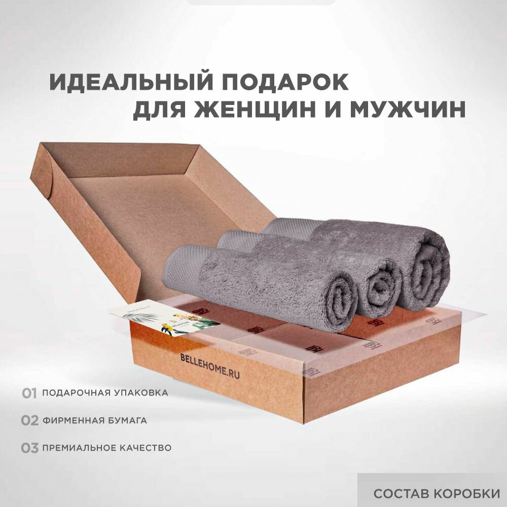 Набор полотенец BELLEHOME "Антрацит", махровые, 3 шт., 50х70 см, 50х100 см, 70х140 см, хлопок 100 %