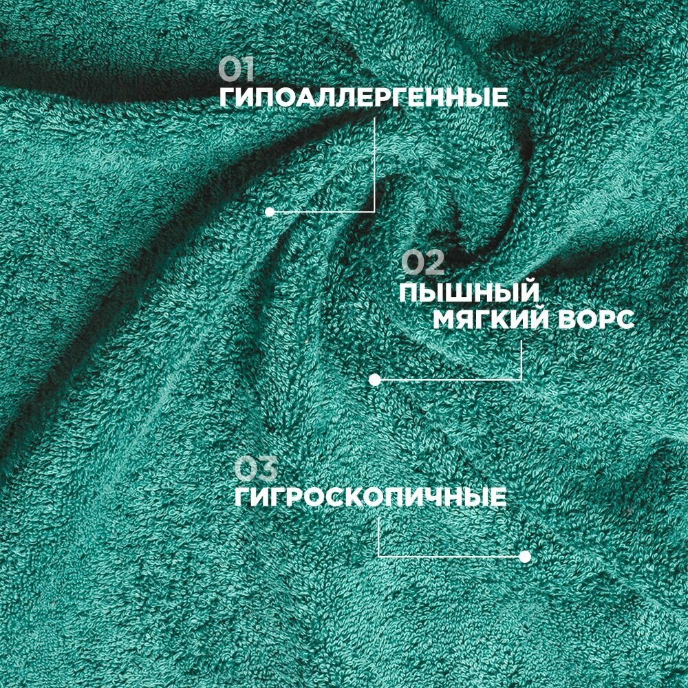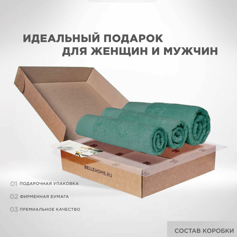 Набор полотенец BELLEHOME "Изумруд", махровые, 3 шт, 50х70 см, 50х100 см , 70х140 см, хлопок 100 %