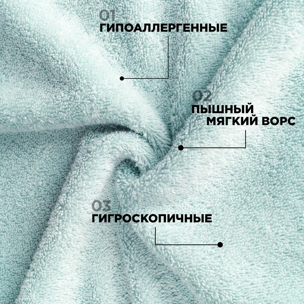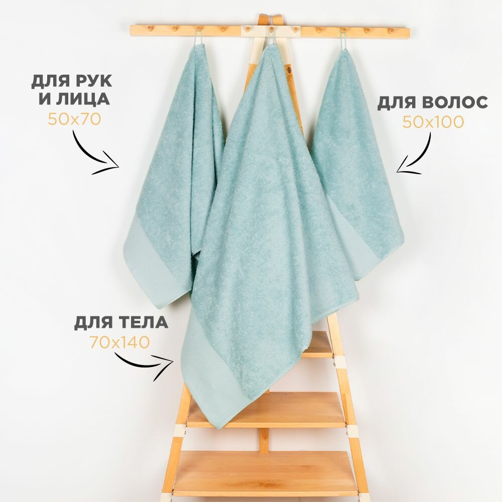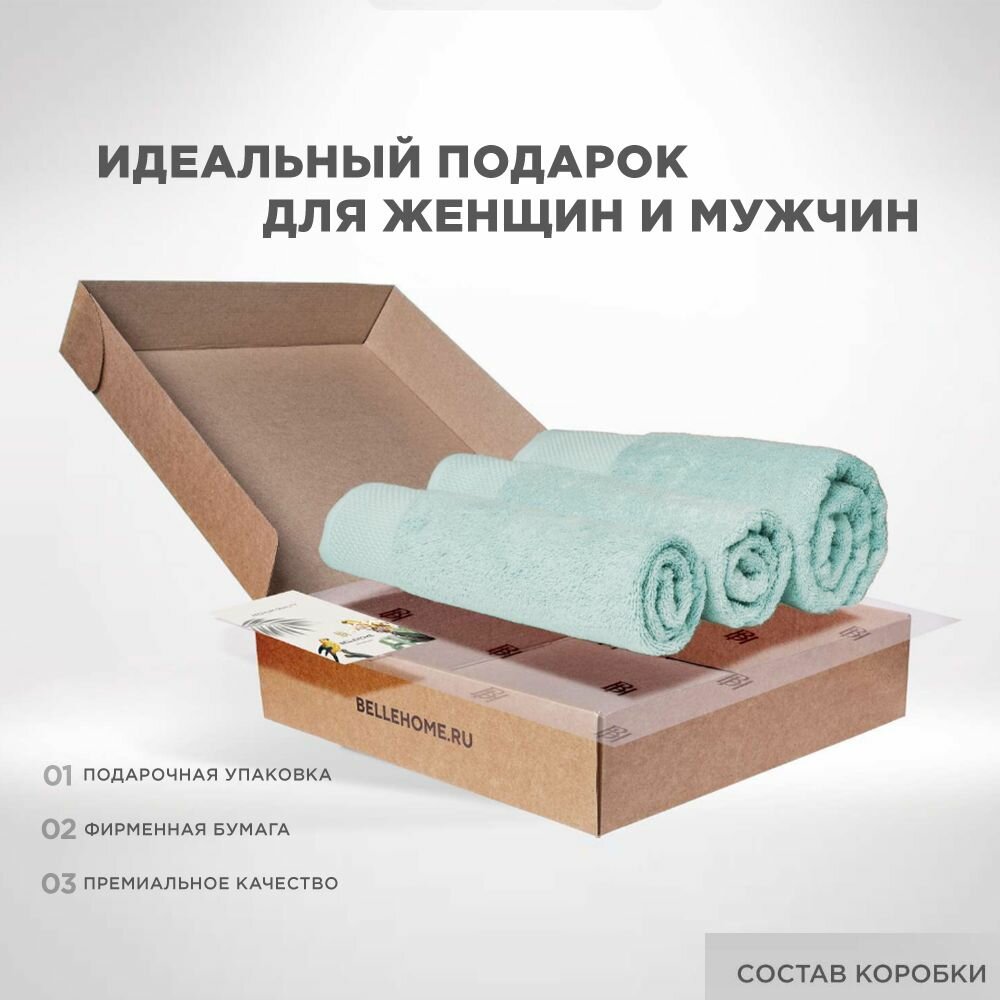Набор полотенец BELLEHOME "Минт", махровые, 3 шт., 50х70 см, 50х100 см, 70х140 см, хлопок 100 %