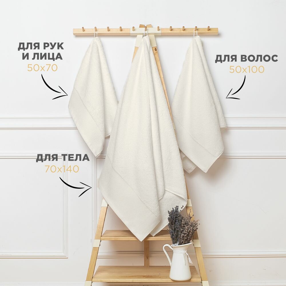 Набор полотенец BELLEHOME "Айвори", махровые, 3 шт., 50х70 см, 50х100 см, 70х140 см, хлопок 100 %
