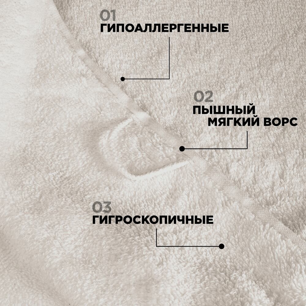 Набор полотенец BELLEHOME "Экрю", махровые, 3 шт., 50х70 см, 50х100 см, 70х140 см, хлопок 100 %