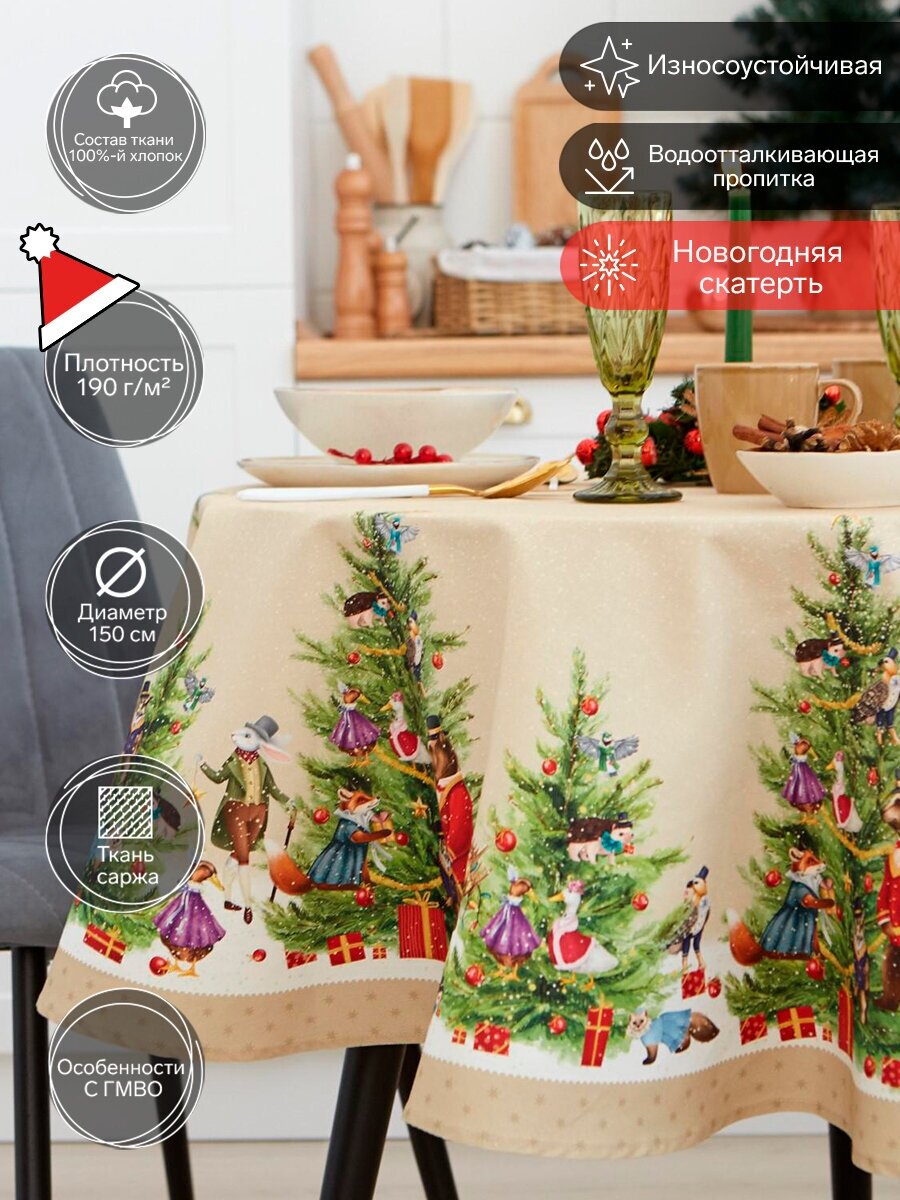 Скатерть новогодняя "Этель" "Forest animals" d=150см +/-3см с гмво, 100%хл, саржа 190 гр/м2