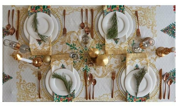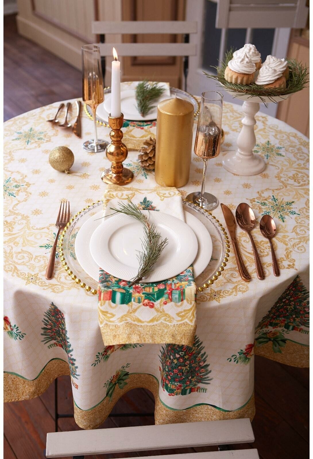 Купить Новый год. Скатерть новогодняя "Этель" Golden Christmas d=215 +/- 2см с гмво, 100%хл, саржа 190 гр/м2