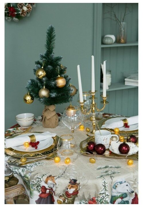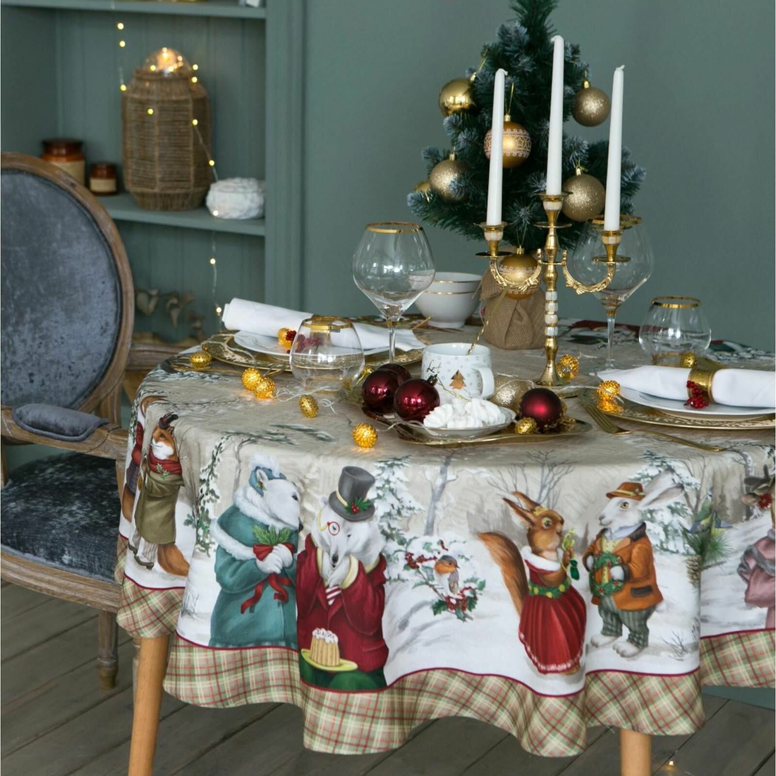 Скатерть новогодняя "Этель" "Forest animals" d=150см +/-3см с гмво, 100%хл, саржа 190 гр/м2