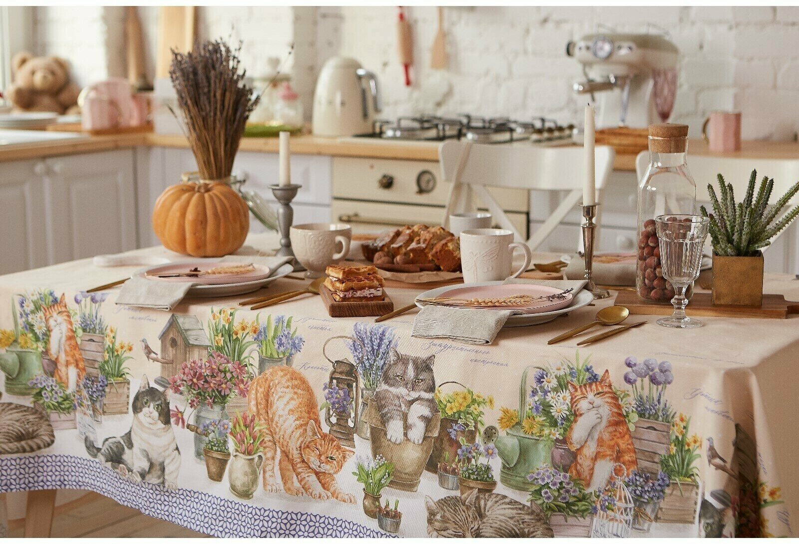 Купить Скатерть Этель Уютные коты размер 180х147 см, 100% хлопок, саржа 190 г/м2