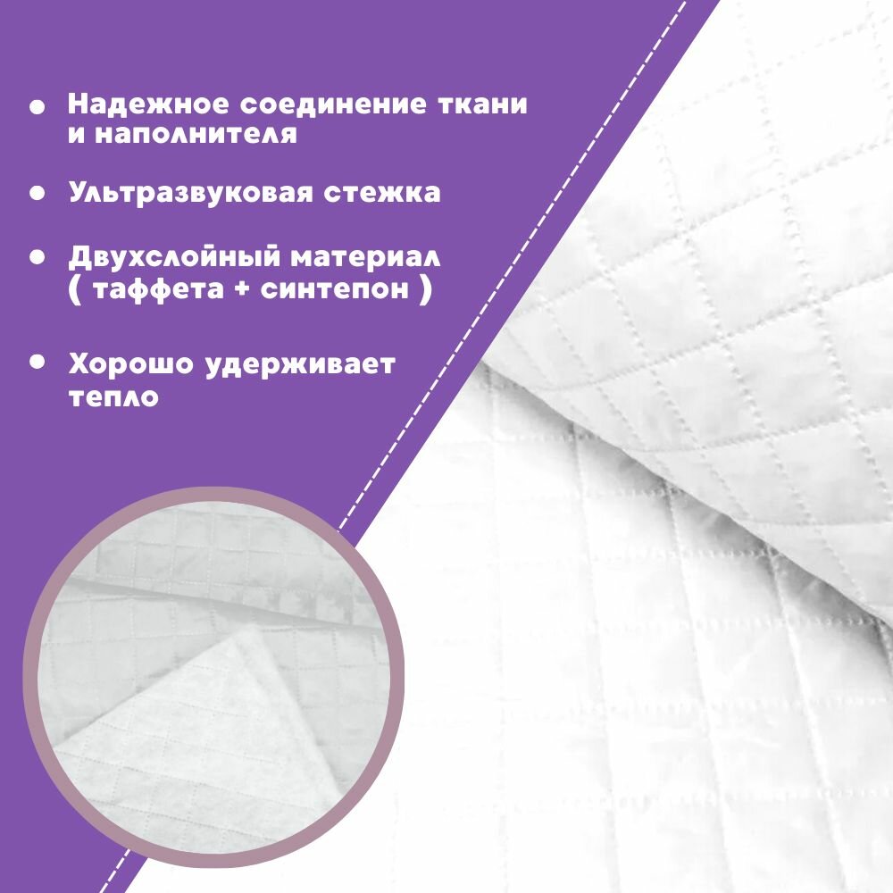 Купить Ткань термостеганая подкладочная Таффета+синтепон, цвет белый, ш-150 см, на отрез, цена за 2 пог. метра