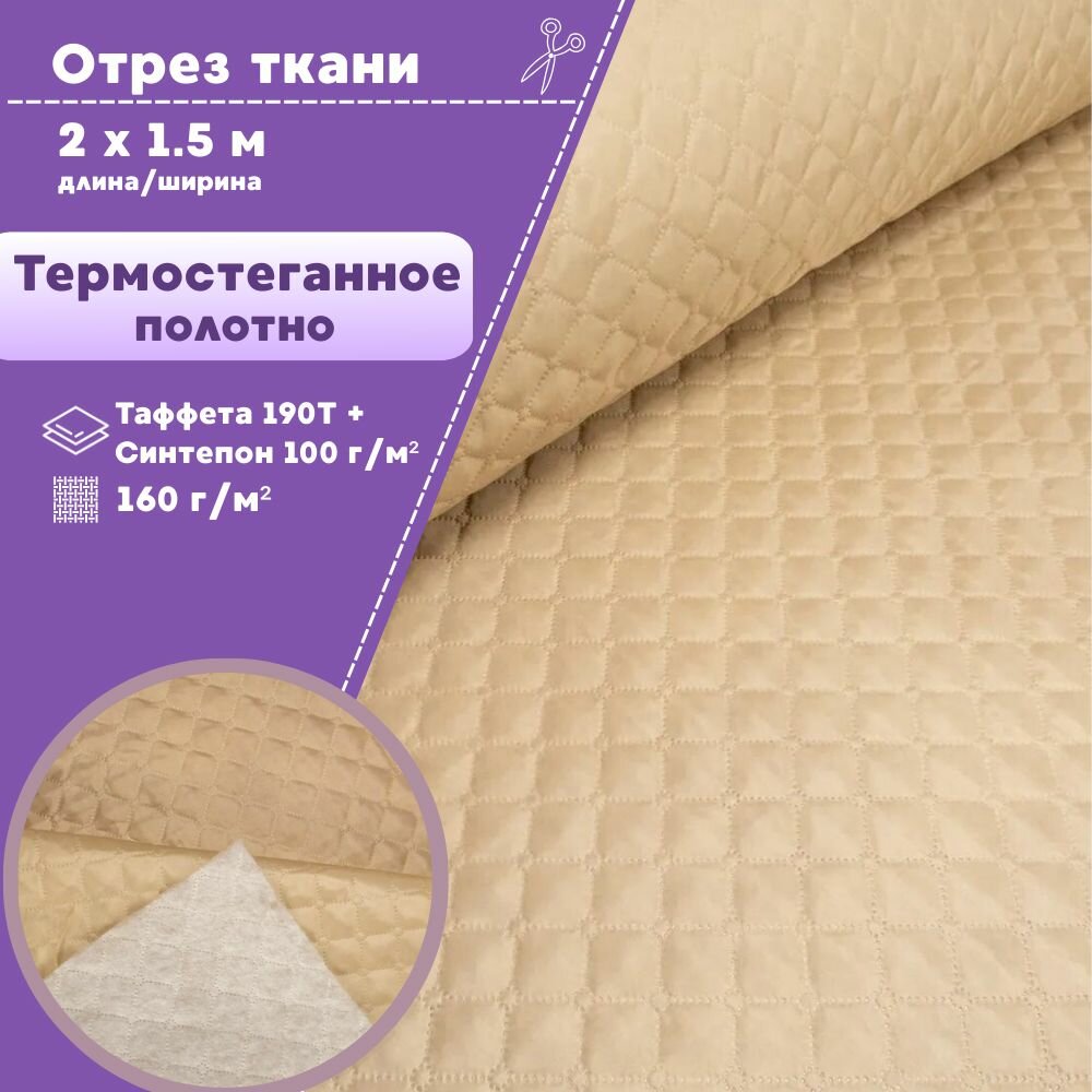 ткань термостеганая подкладочная Таффета+синтепон, цвет бежевый, ш-150 см, на отрез, цена за 2 пог.метра