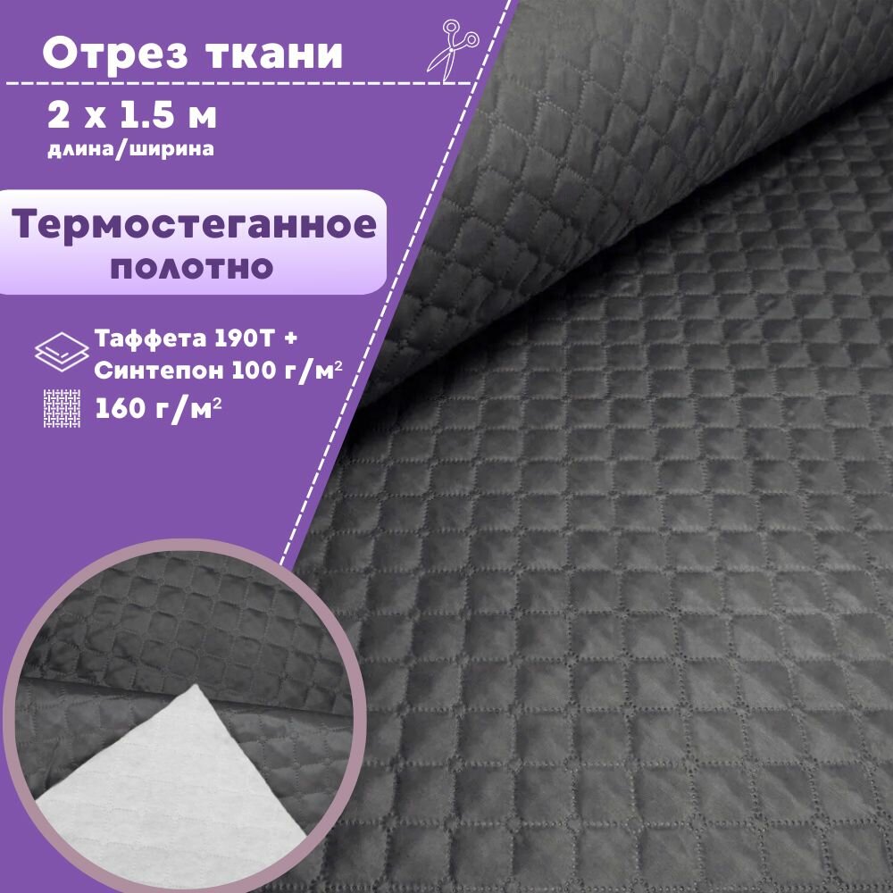 ткань термостеганая подкладочная Таффета+синтепон, цвет темно-серый, ш-150 см, на отрез, цена за 2 пог.метра