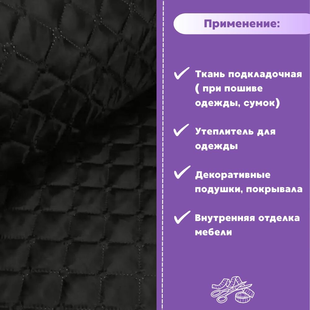 Купить Ткань термостеганая подкладочная Таффета+синтепон, цвет черный, ш-150 см, на отрез, цена за 2 пог. метра