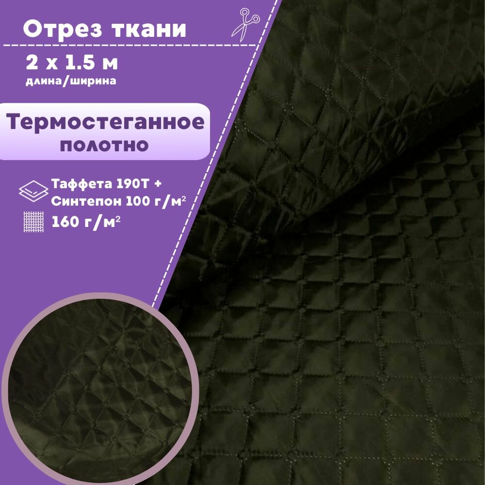 ткань термостеганая подкладочная Таффета+синтепон, цвет темный хаки, ш-150 см, на отрез, цена за 2 пог.метра