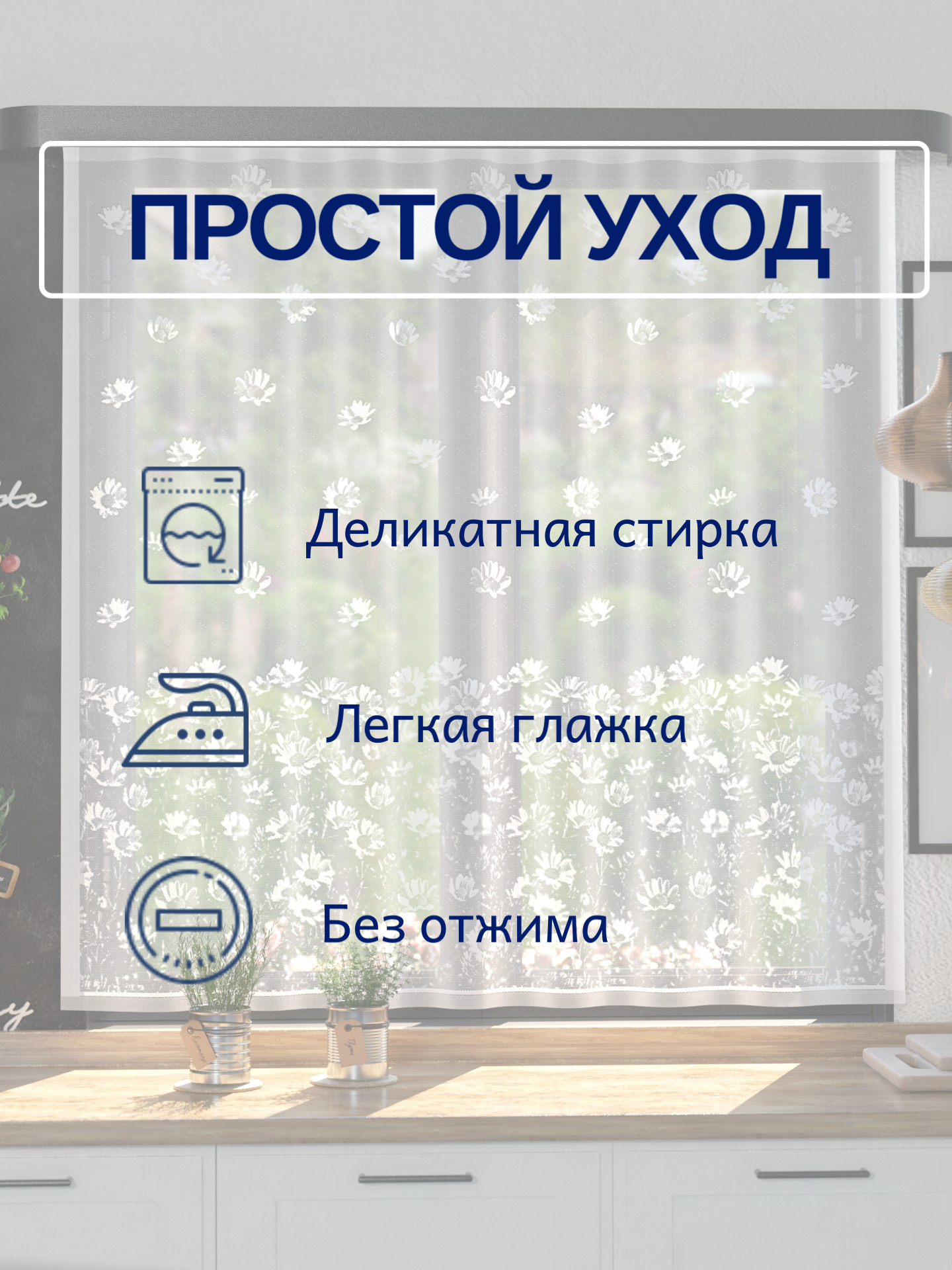Тюль короткий для кухни 165*170 белый, занавеска без шторной ленты интересное: