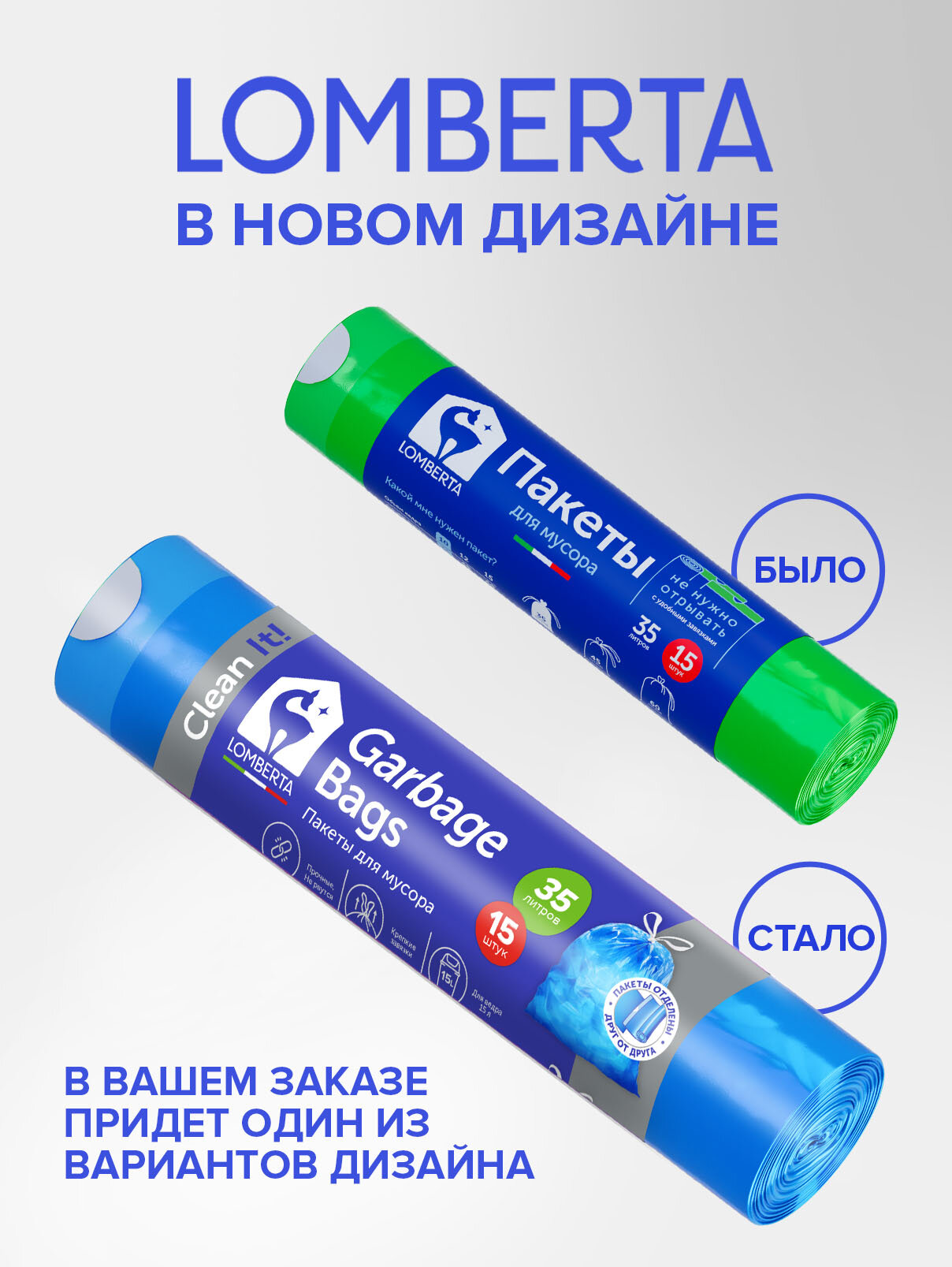 Пакеты для мусора Lomberta Overlap, 35л x 15шт