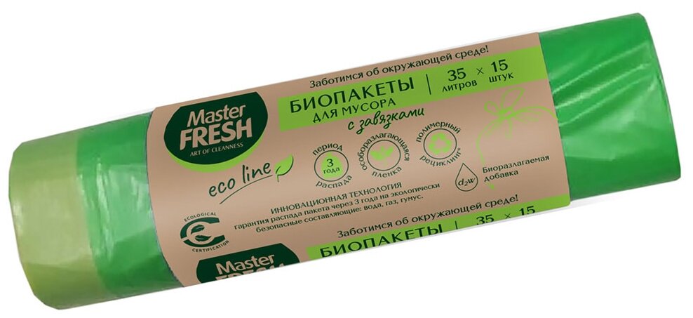 Мешки для мусора Master FRESH 35 л, 15 шт, 1 упак, зеленый интересное: