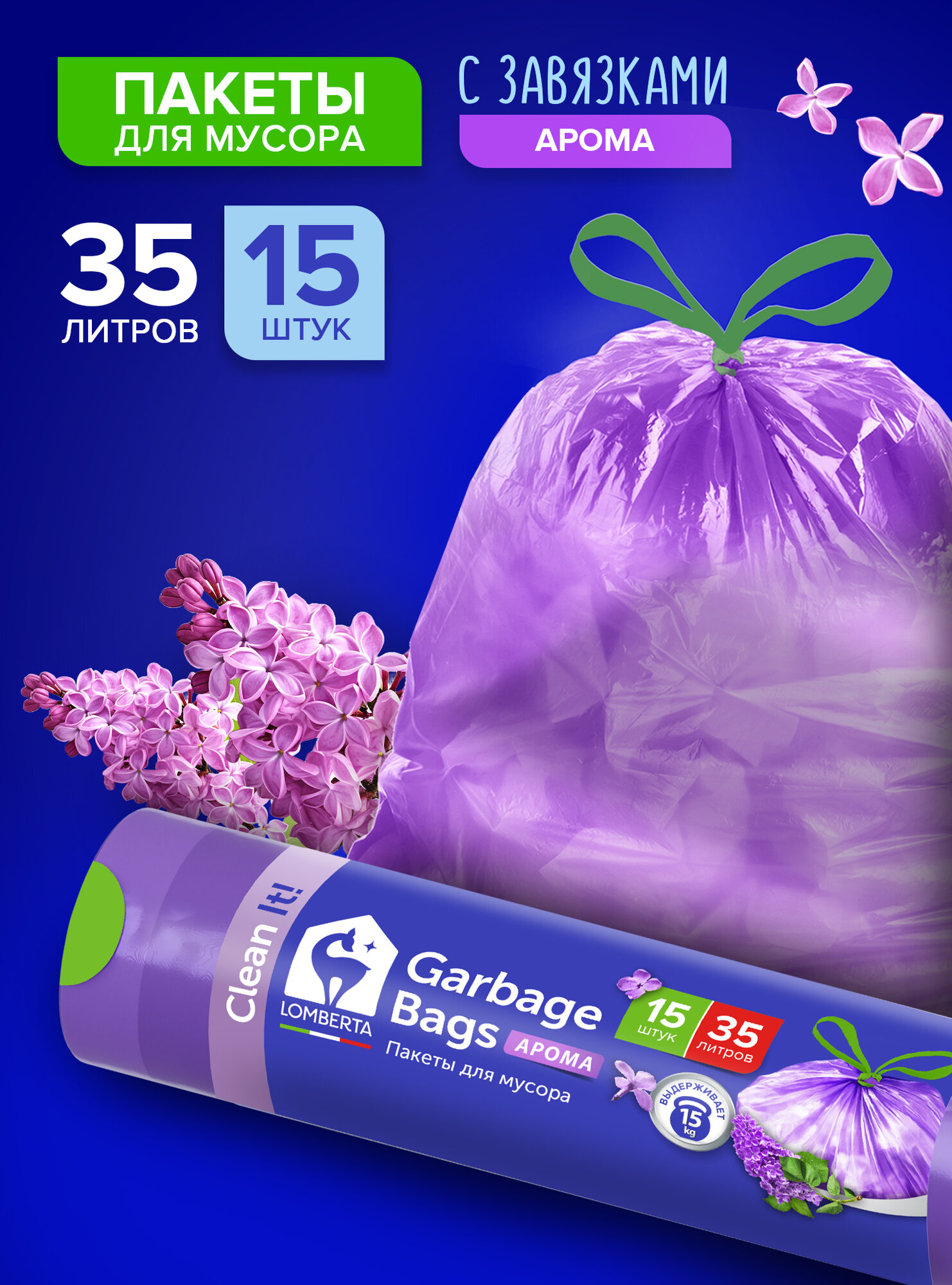 Купить Мешки для мусора Lomberta aroma с завязками 35л, 15шт, пакеты для мусора ароматизированные