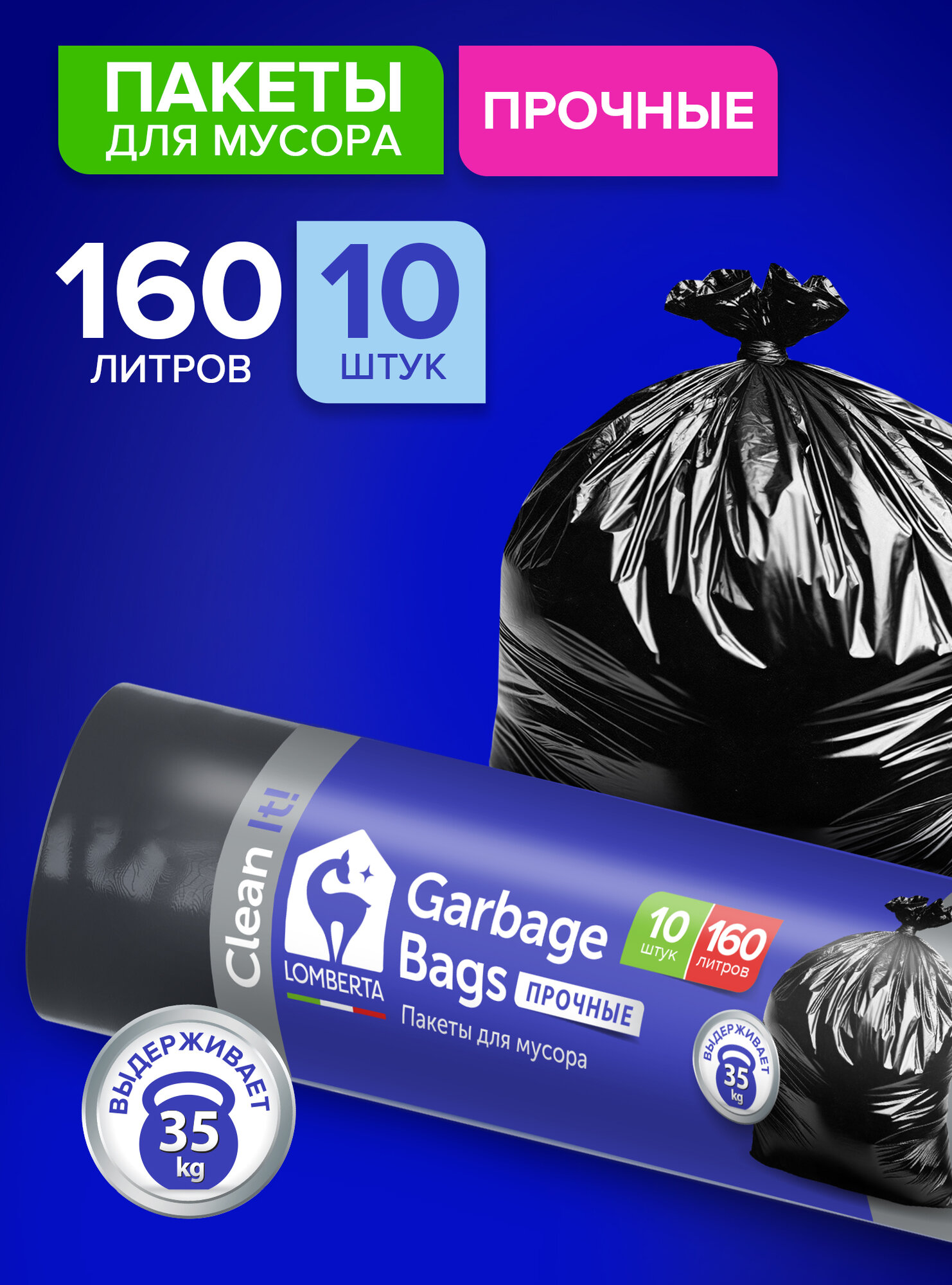 Купить Мешки для мусора Lomberta 160л, прочные пакеты в рулоне, 10 штук
