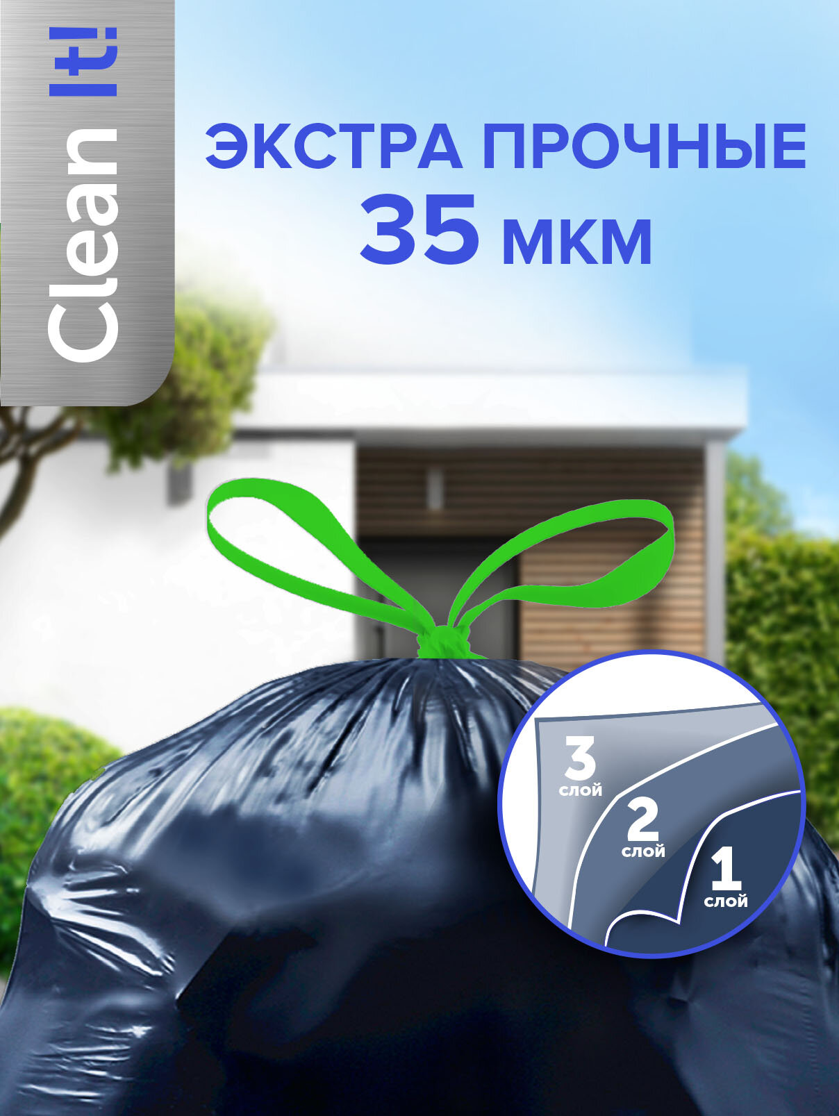 Мешок мусорный 180 литров, сверхпрочный, для строительного мусора, для уборки территории, для уборки после ремонта