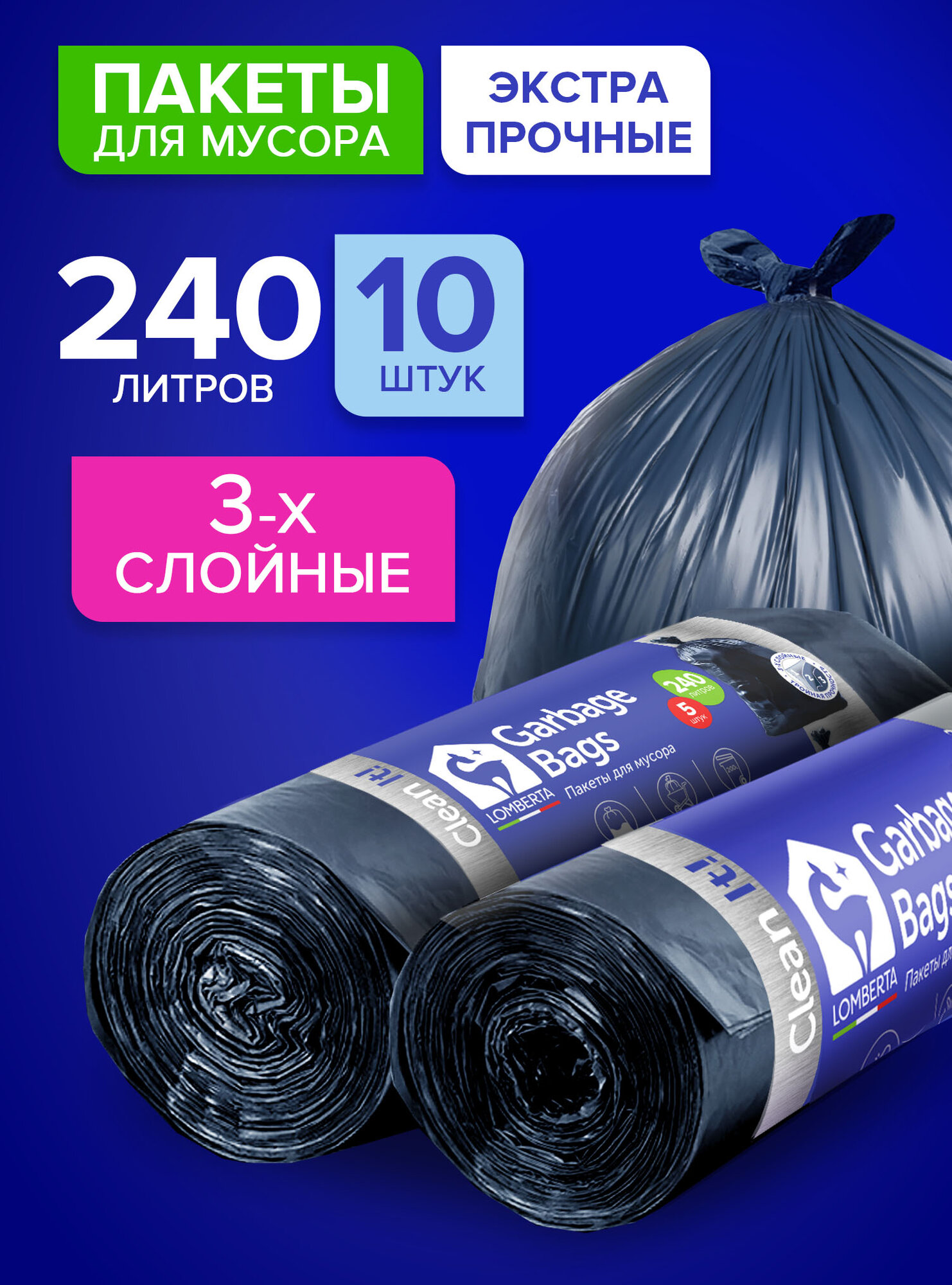 Пакеты для мусора LOMBERTA Трехслойные, без затяжки, 5 шт, 240 л