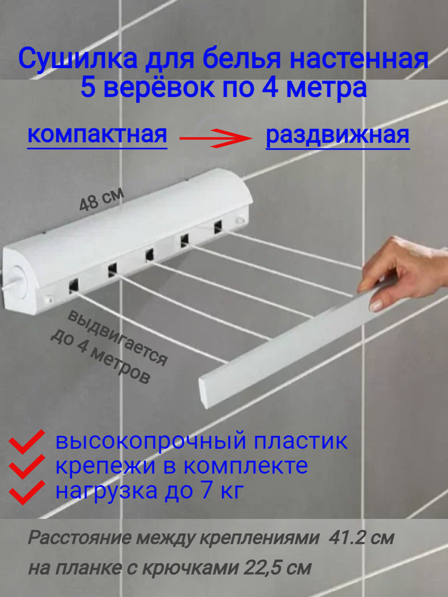 Сушилка для белья Marianna Two Dolfins, складная, настенная, рабочая длина 20м интересное:
