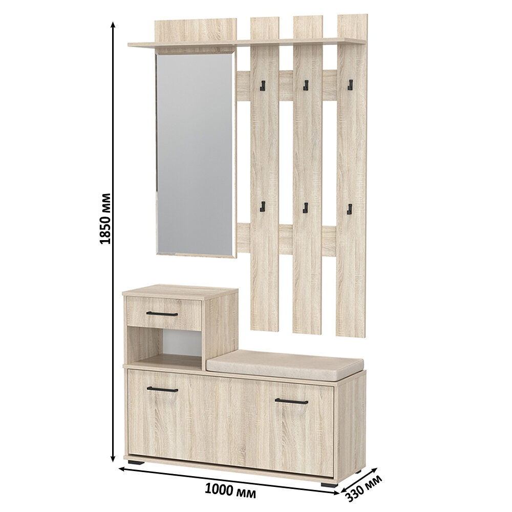 Прихожая Лира 2-0714+2-3814, цвет дуб сонома, 100х33х185 см, универсальная сборка интересное: