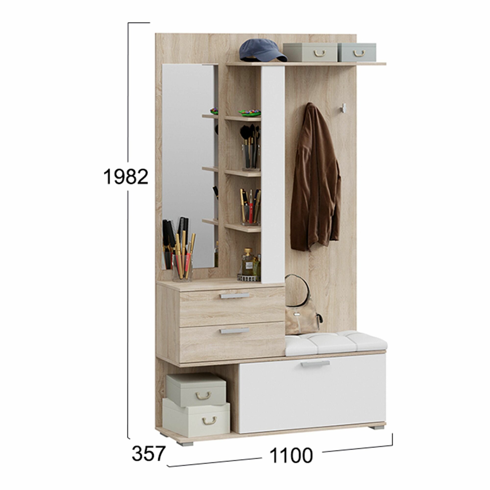 Прихожая мебель Эрика № 1, ТриЯ, (ВхГхШ) 200 x 35.7 x 164см, Дуб Сонома/Белый