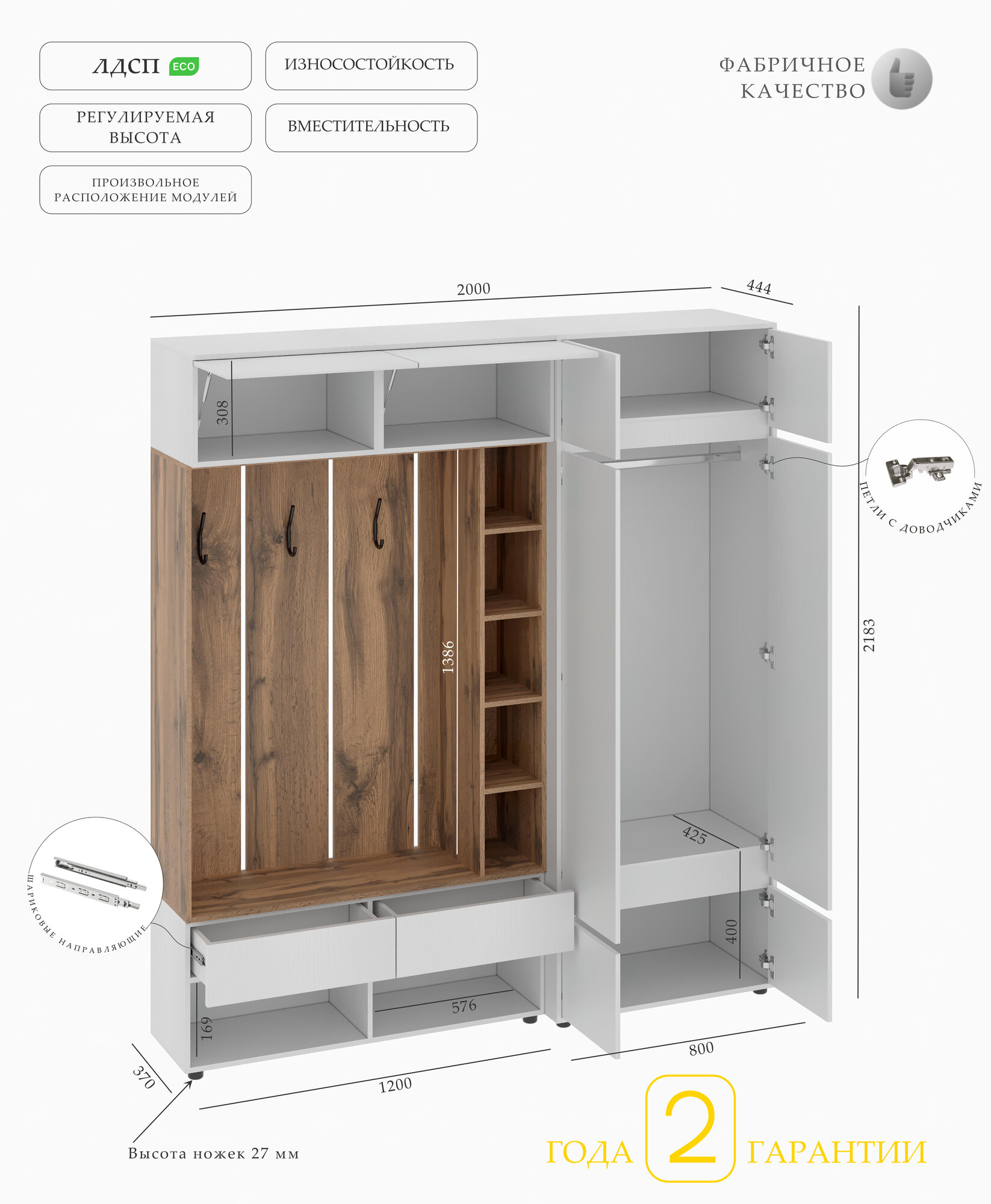 | Особенности | для узкой прихожей, модульная конструкция, мягкое сиденье, с местом для сидения, со штангой для вешалок |