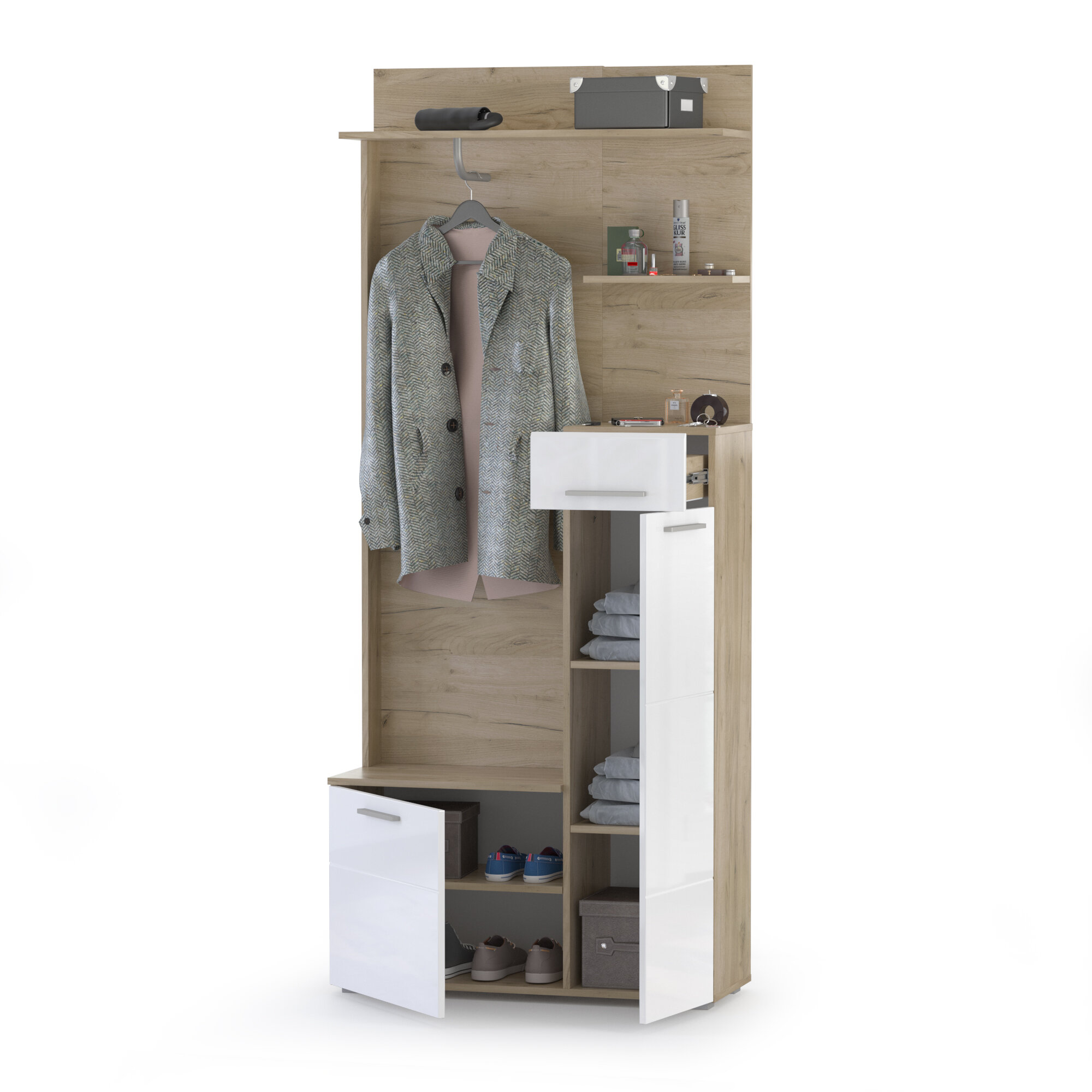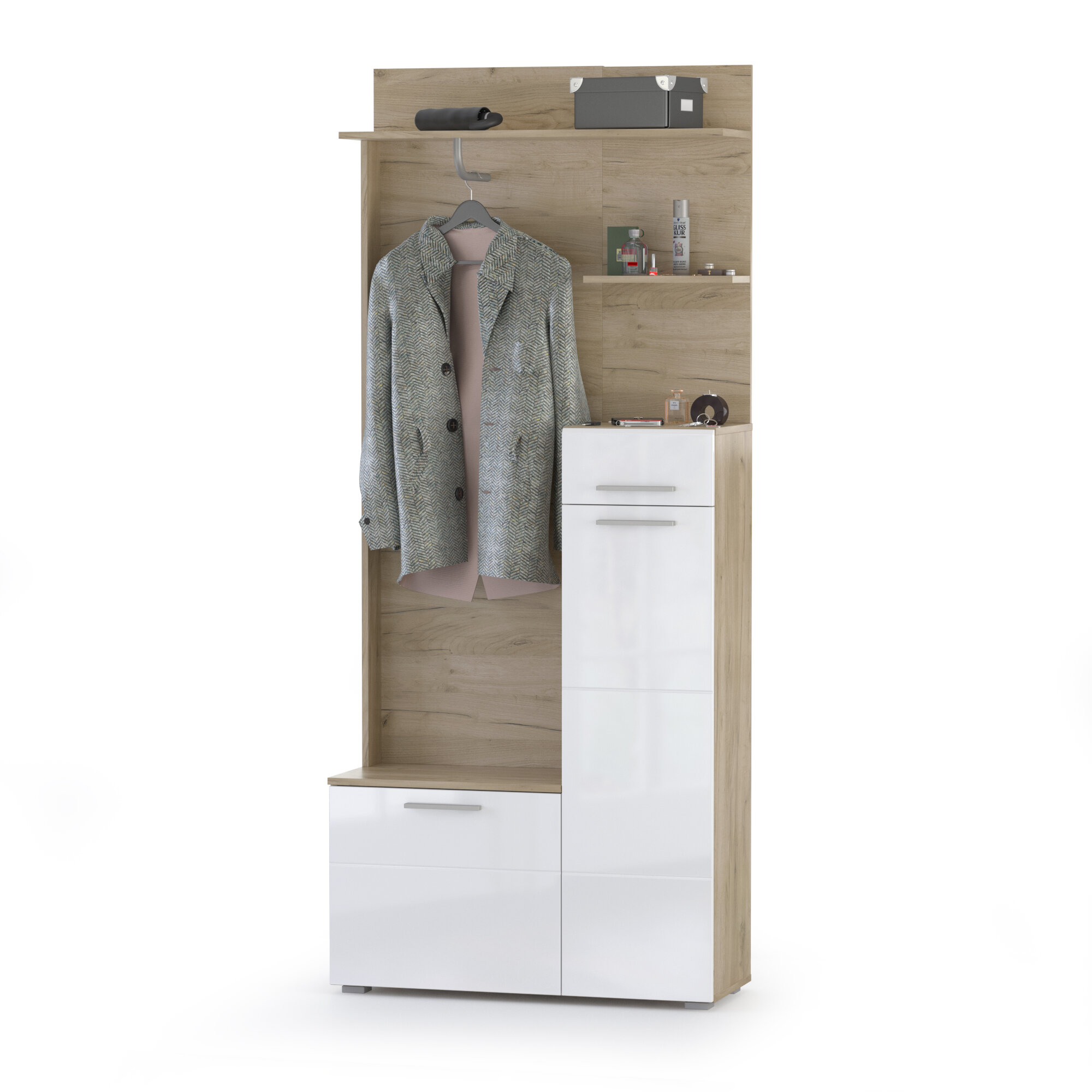 Купить Прихожая Лайн 10.16, цвет дуб крафт серый/белый глянец, ШхГхВ 89,8х35,1х210 см, НЕ универсальная сборка