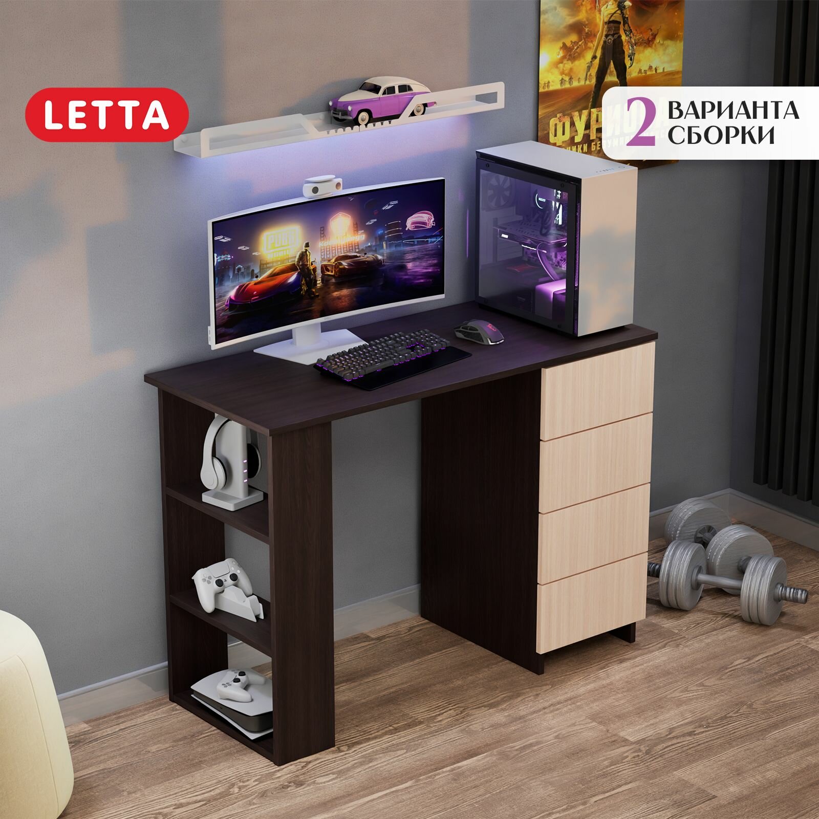 Купить Компьютерный стол LETTA "Ультра", письменный, с ящиками и полочками, ЛДСП, 105,6x75x45 см