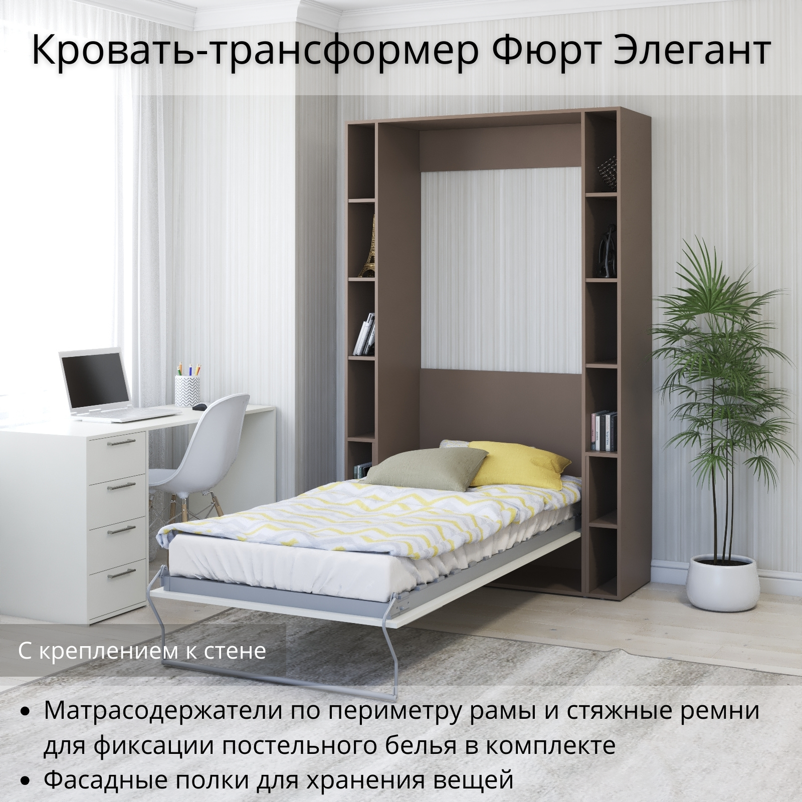 Купить Шкаф кровать трансформер с креплением к стене, Stylint, Фюрт Элегант, 90х200, Мокко/Белый платиновый