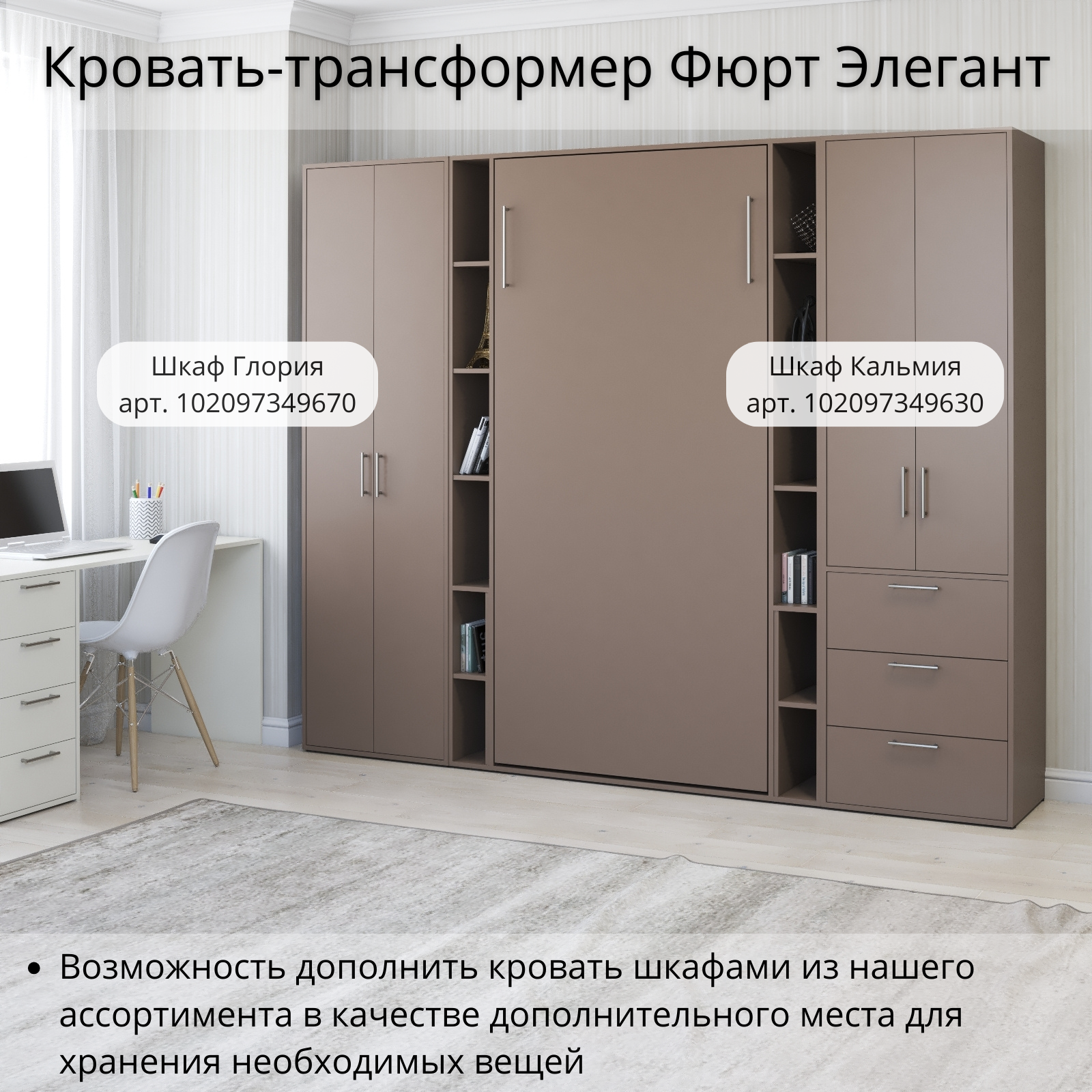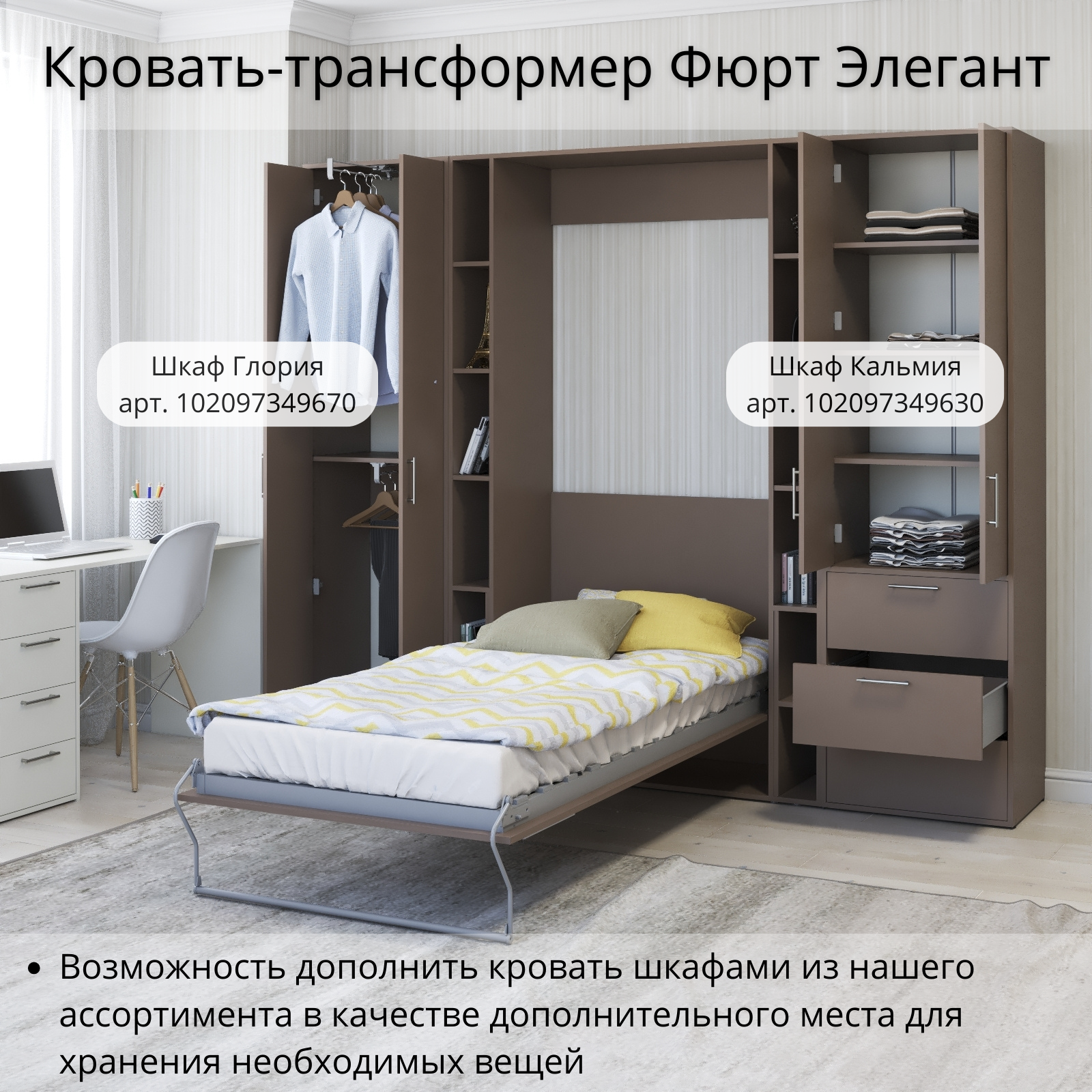 СохранитьШкаф кровать трансформер с креплением к стене, Stylint, Фюрт Элегант, 90х200, Мокко интересное: