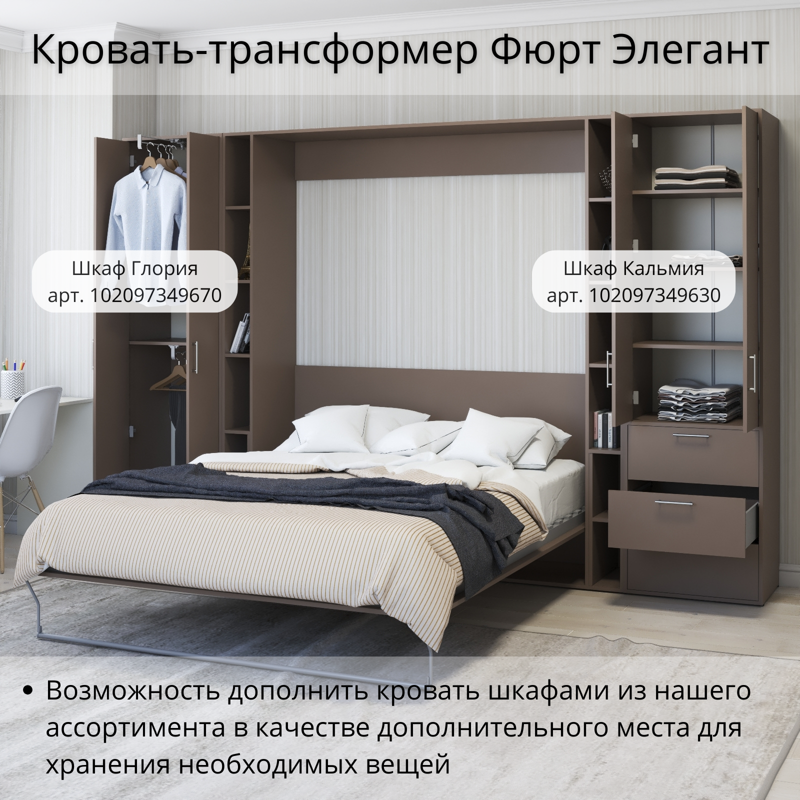 СохранитьШкаф кровать трансформер с креплением к стене, Stylint, Фюрт Элегант, 160х200, Мокко интересное: