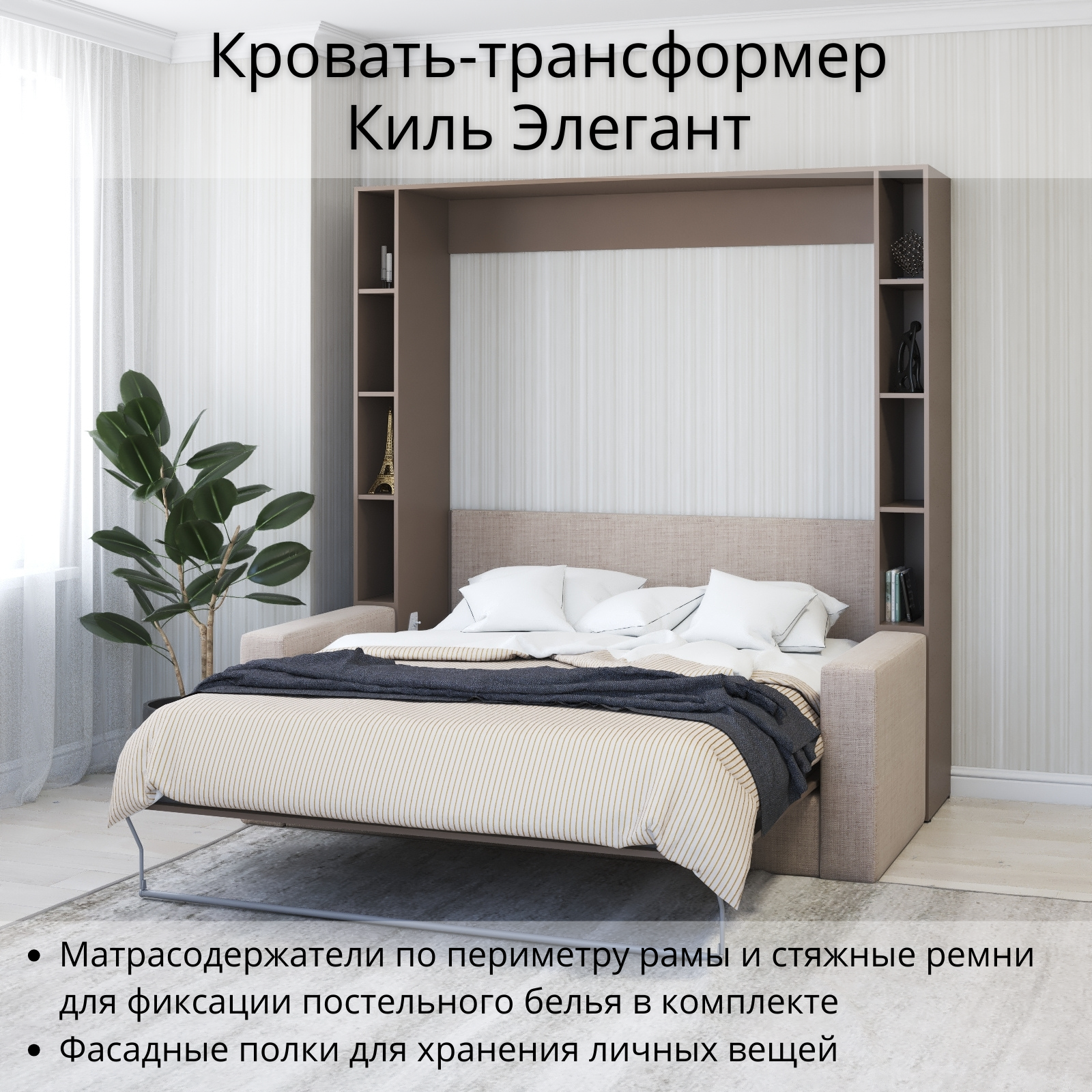 Шкаф кровать трансформер с креплением к стене, Stylint, Киль Элегант, 160х200, Мокко/Белый платиновый