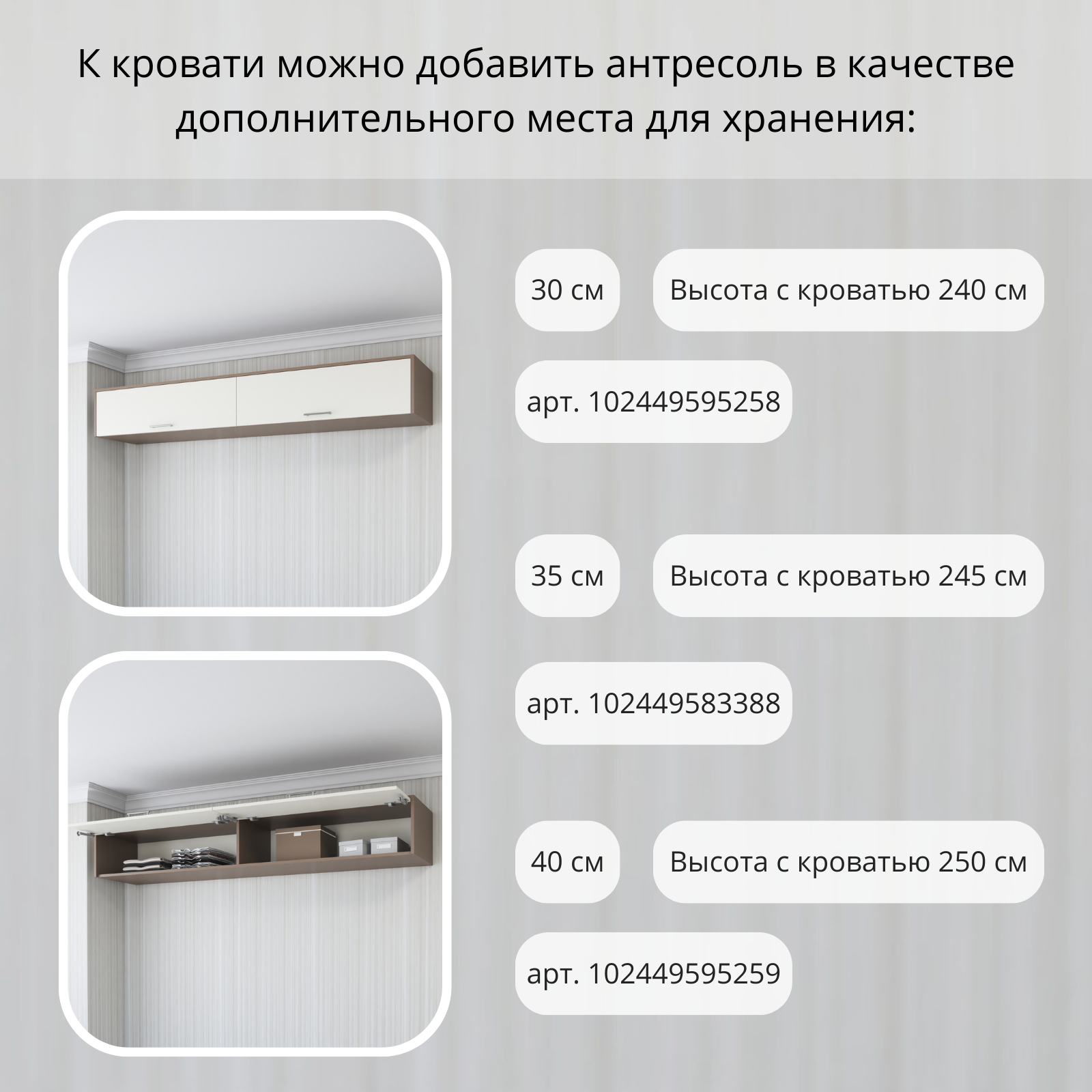 | Дополнительная информация | Внимание! Мебель в данном заказе должна быть прикреплена к капитальной бетонной стене, толщиной не менее 12 см, и не имеющей дополнительных слоёв, таких как утеплитель, звукоизоляция, толстая штукатурка и т.д. Крепление Мебели к стене, не отвечающей этим требованиям, запрещено. Сборка и крепление Мебели к стене должны осуществляться квалифицированным специалистом. Выбор стены, соответствующей этим требованиям, возлагается на клиента. Перед использованием кровати необходимо ознакомиться с техническим паспортом |